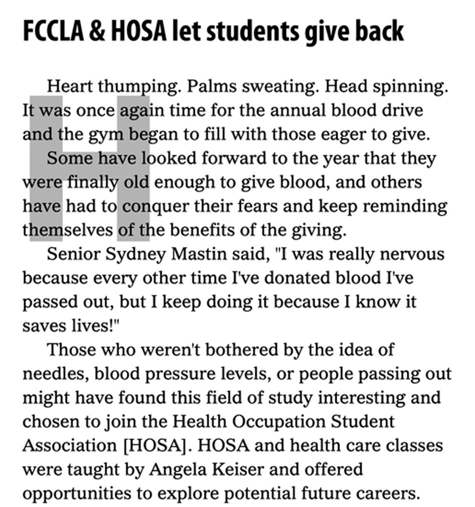 Write a compelling, eye-catching lead to pull your reader into the story. Include meaningful quotes from your source(s) to allow them to help tell your story.