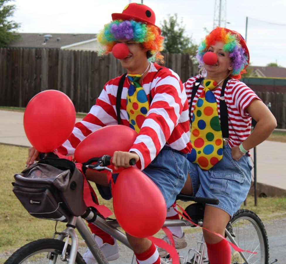What? Ride a tandem bicycle in the Homecoming Parade dressed as circus clowns