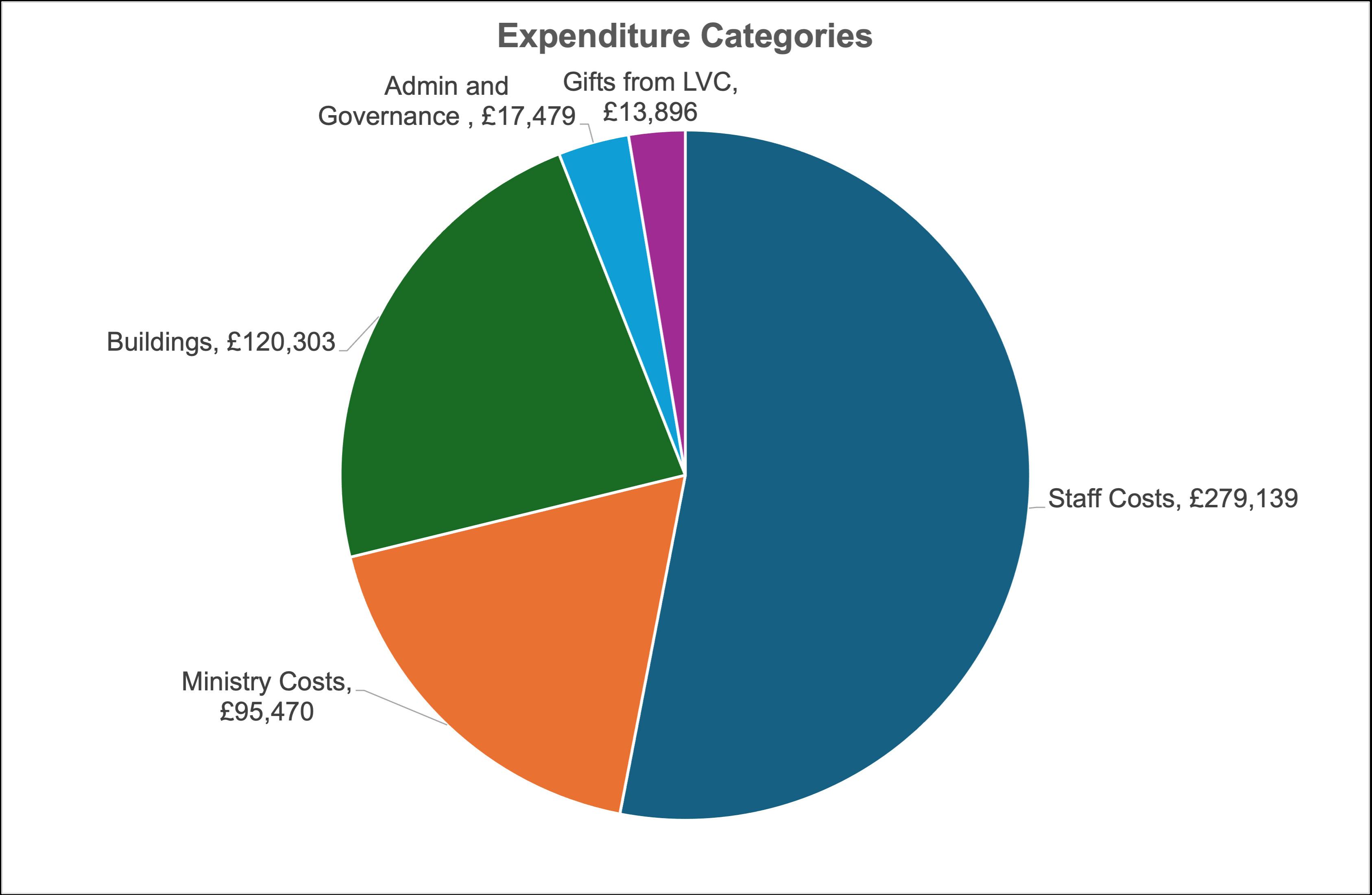 At Life Vineyard Church we invest gifts, donations and other income in the mission of seeing the dream become a reality. Our key priorities have been described throughout this report. The pie chart below shows how this income has been invested across our main expenditure catagories.