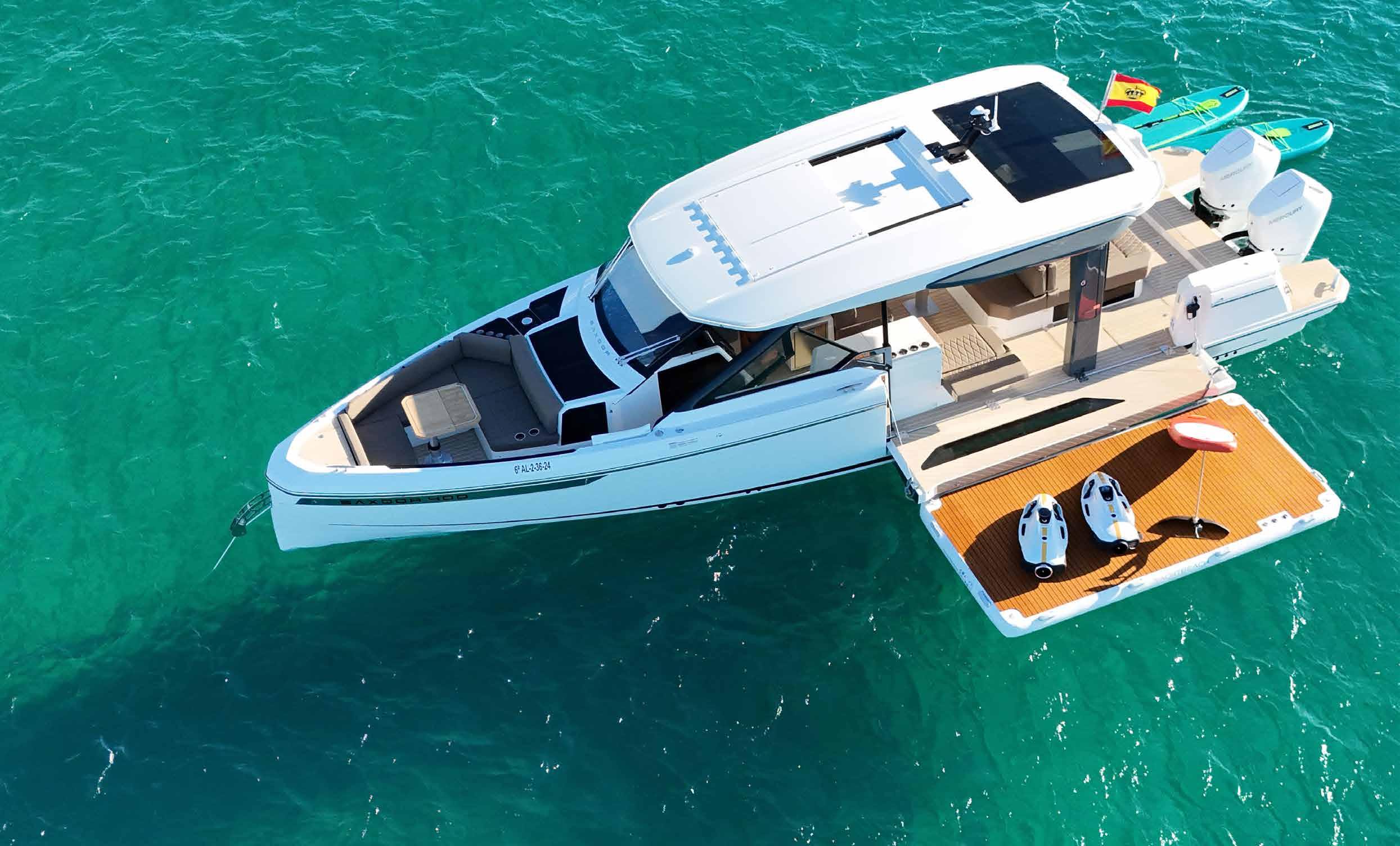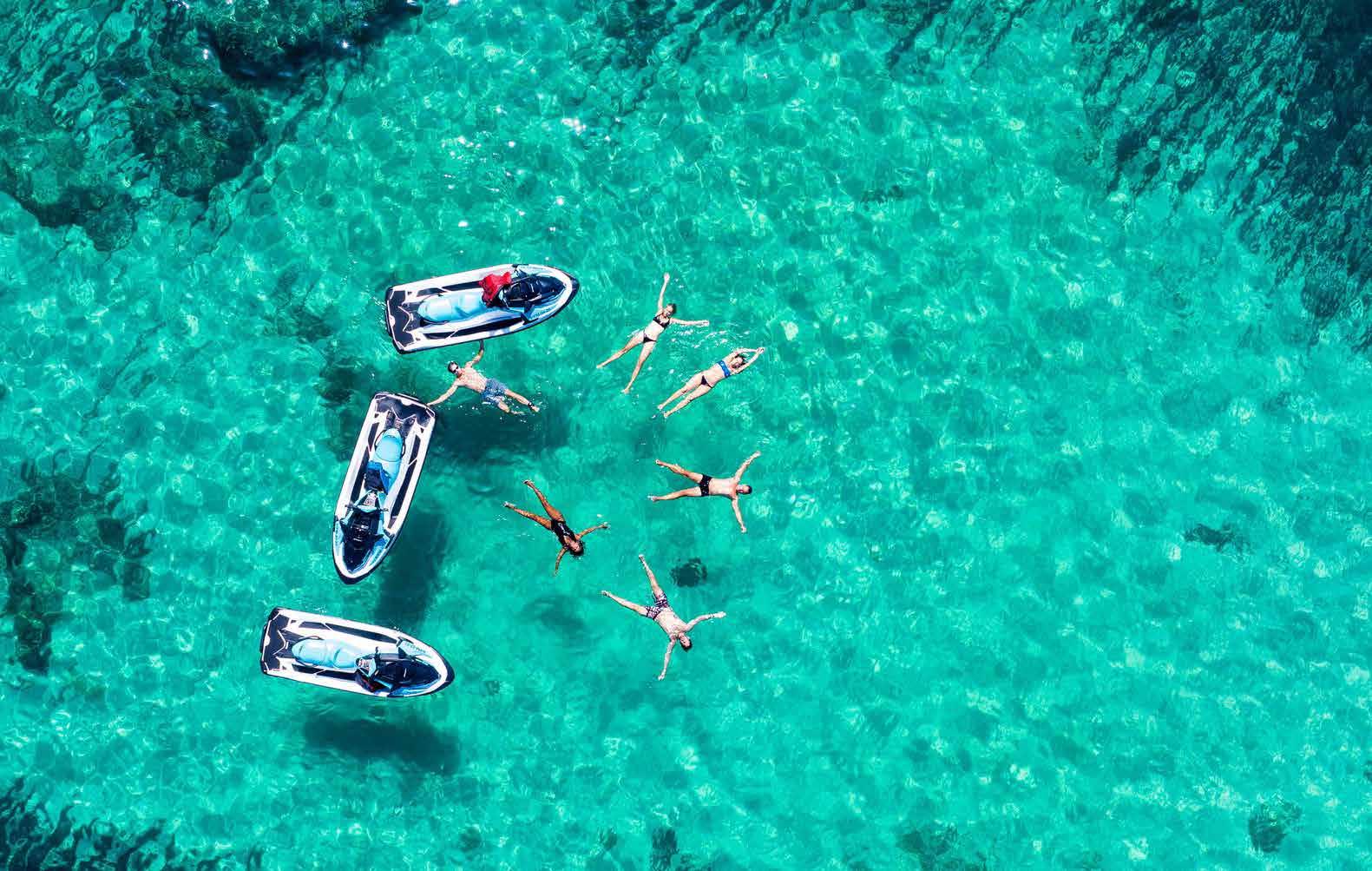 Skipper, hostess, towels, snorkel equipment, stand-up paddle board & jetski