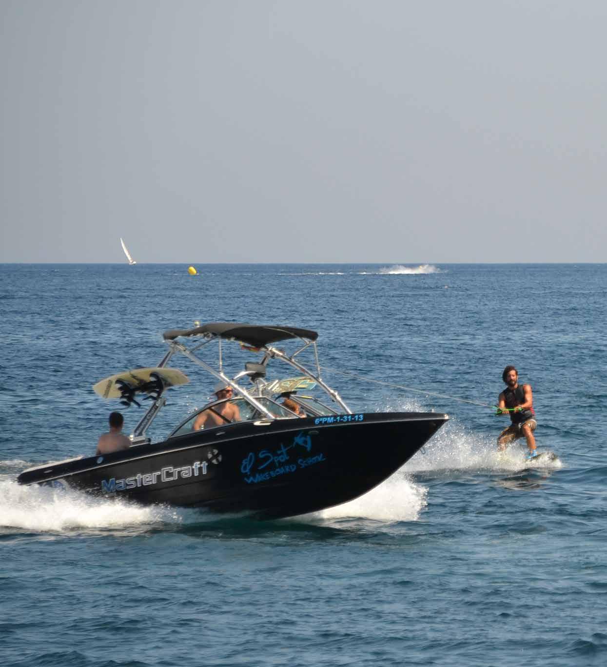 Skipper, hostess, towels, snorkel, water ski, donut, stand-up paddle board