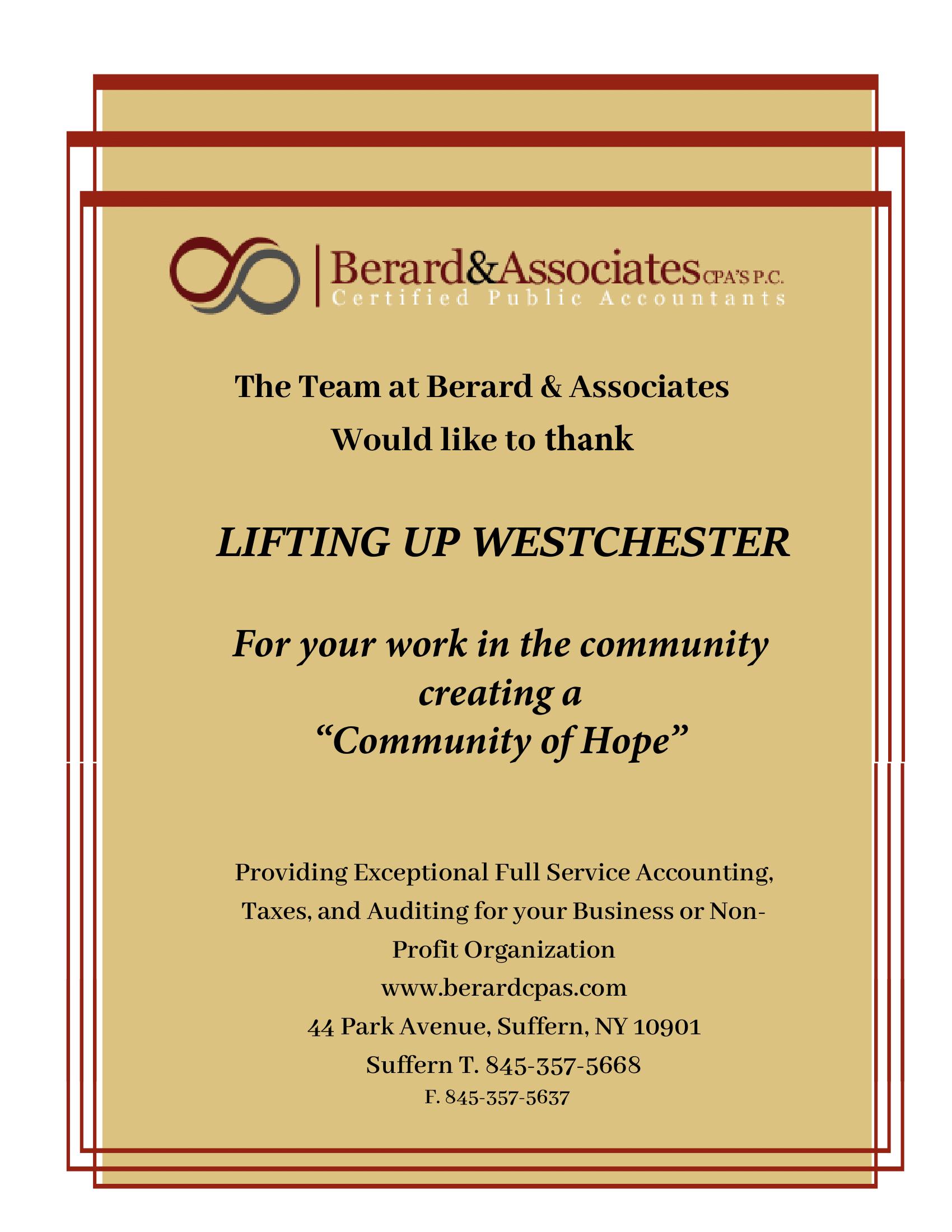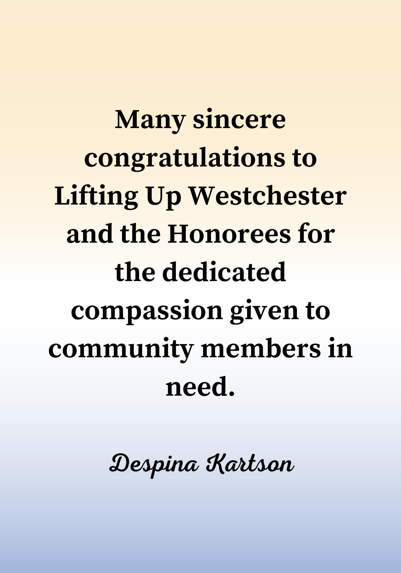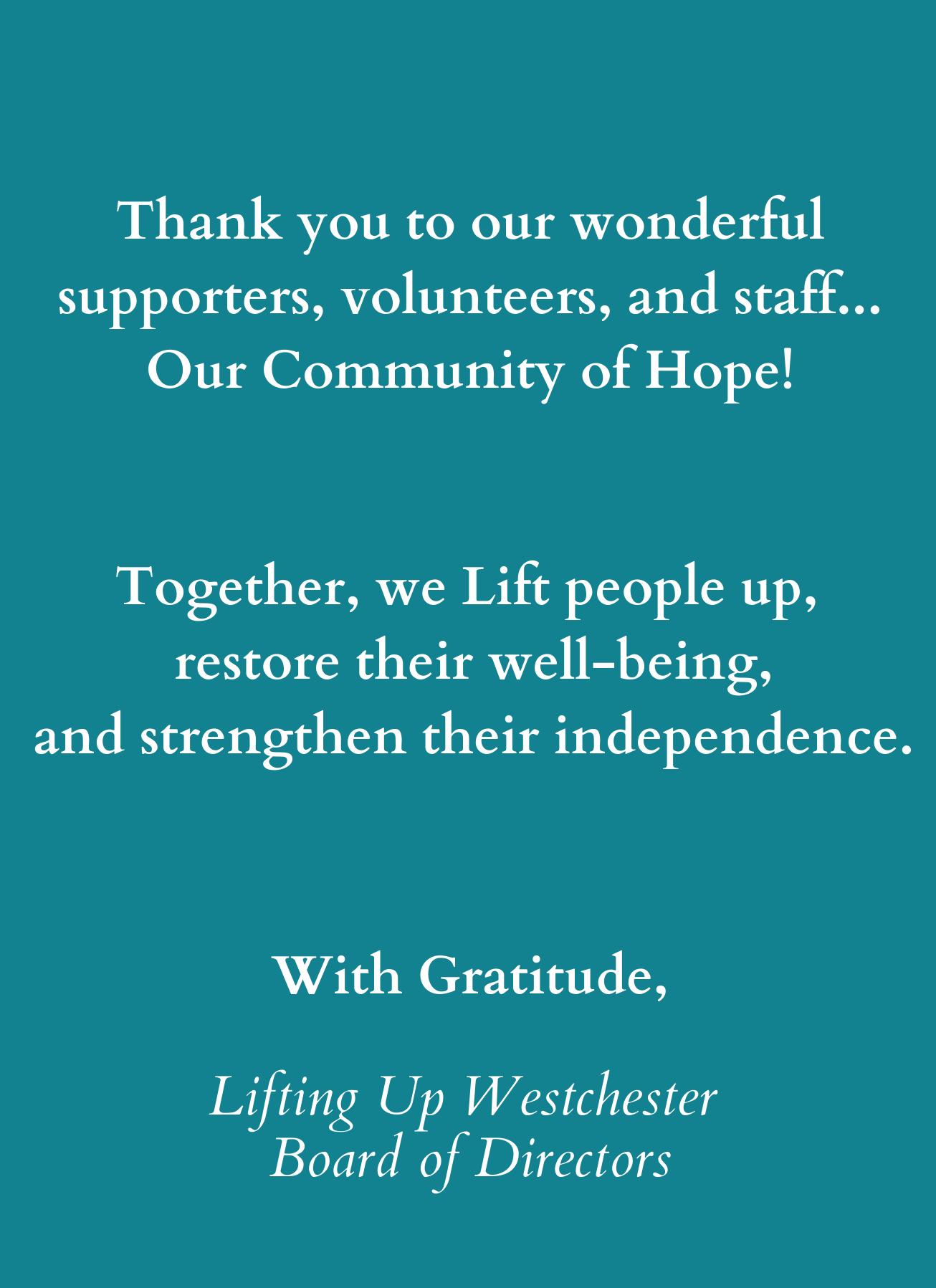 Thank you for being with us tonight and for your dedication to Lifting Up Westchester.