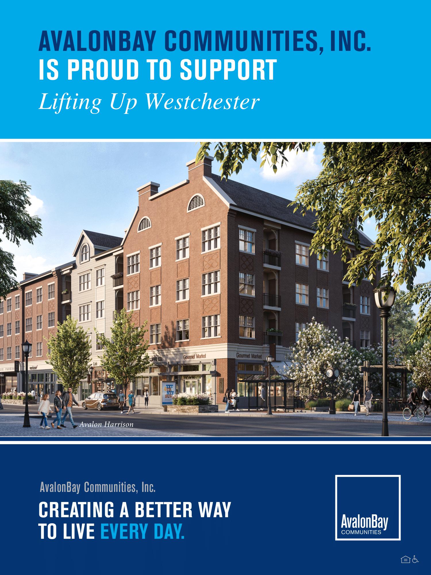 Rooted in its core value of A Spirit of Caring, AvalonBay has a long- standing history of building strong communities by giving back. AvalonBay deepened its commitment in 2015 launching its Building Strong Communities philanthropy program and community engagement strategy, which focuses on community preparedness and disaster relief, affordable housing, and support for at risk populations. Over the last 5 years, AvalonBay has been proud to partner with Lifting Up Westchester to help achieve their mission of providing support to men, women and children in need.