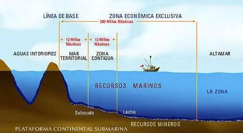 autoridades políticas del país, para extender la jurisdicción marítima nacional (mar territorial) hasta a una distancia de 12 millas náuticas, (distancia aproximadamente a la cual se divisa el horizonte) y adicionalmente definir un área de mar que se extendiera hasta las 200 millas náuticas, medidas desde la costa, denominada zona económica exclusiva.