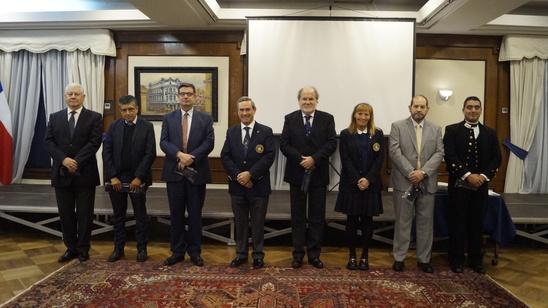 La delegación de Liga Marítima de Chile estuvo integrada por su presidente Edmundo González Robles, acompañado por los miembros del directorio Hugo Barra, Denia Gómez y Pablo Gimeno