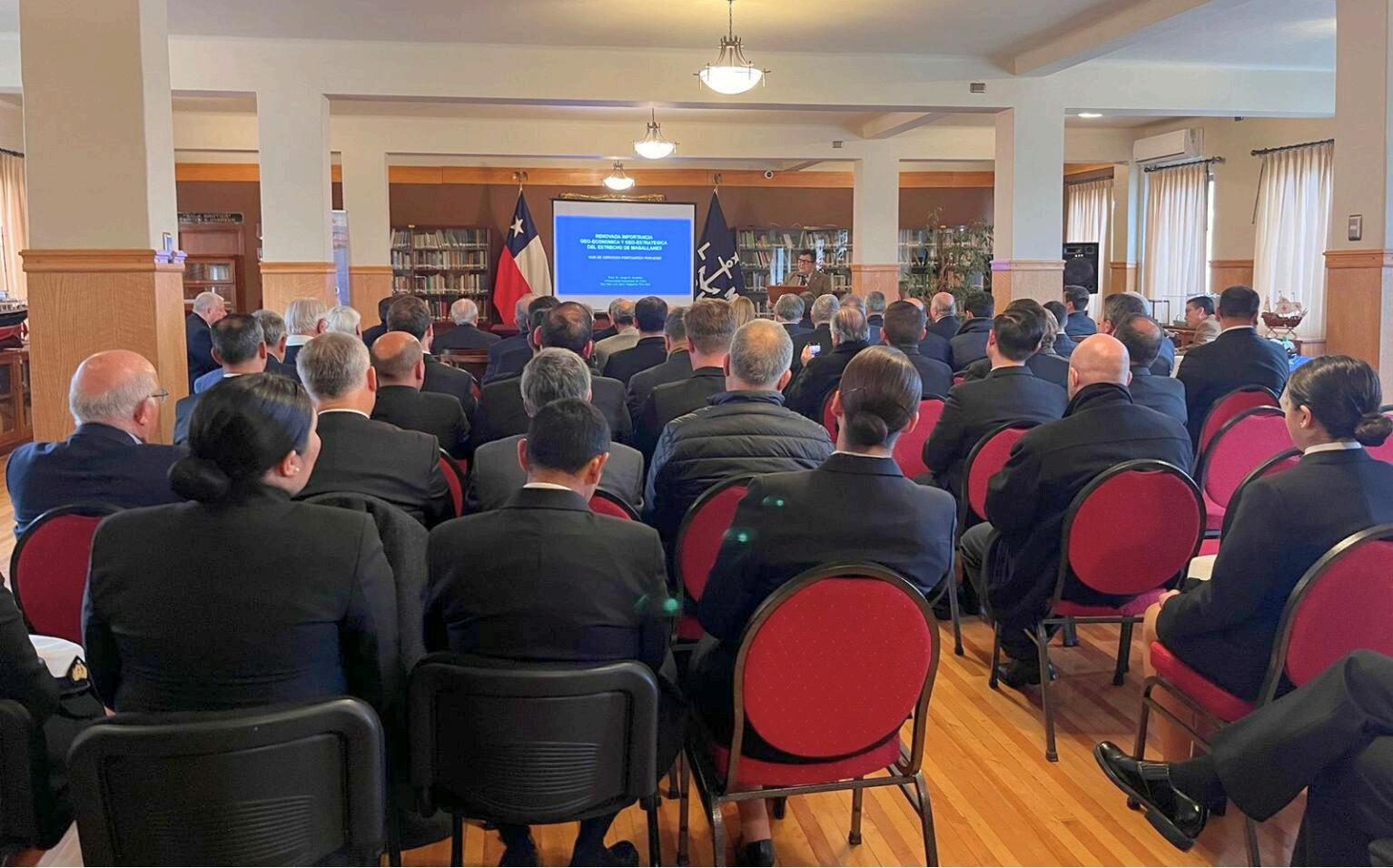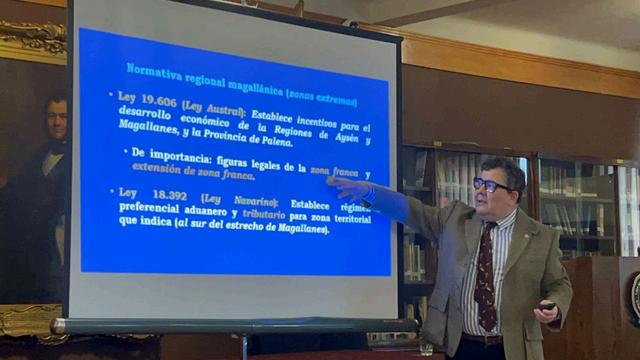 El Dr. Guzmán, con una extensa trayectoria que incluye un doctorado en Estudios Polares del Instituto de Investigación Polar Scott, Universidad de Cambridge, Reino Unido, explicó cómo el Estrecho de Magallanes ha sido históricamente una ruta crucial para la navegación internacional Utilizando mapas históricos, resaltó la evolución del conocimiento geográfico y su relevancia política