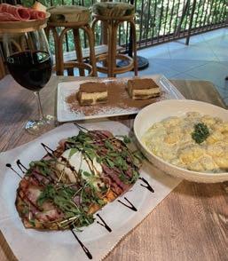本格的なイタリアンレストラン。特製ピザ、パスタ、サン ドイッチ、デザートに至るまで、すべて毎日店内で作られ ています。中でも、 18カ月熟成させた プロシュート・デ・ パルマと本場から 輸入するブッラータ チーズをトッピング した特製ピザ、ピッ ツァ・ラ・ボンバ はぜひ試したいメ ニューです。デザー トのティラミスも自 慢の一品です。
