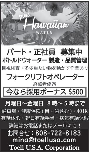 ハワイ求人情報コーナー 求人広告に関するお問い合わせは、☎ 8089260022、もしくは、 Email:ad@lighthousehawaii.comまで。
