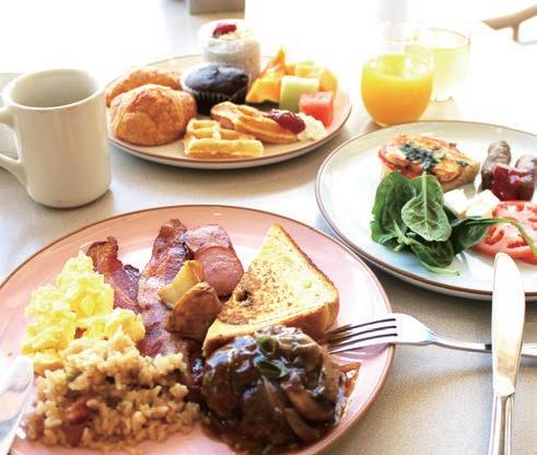 朝日が差し込む広々とした店内は、トロピカルな 花がデザインされた開放的な空間。宿泊客だけでな く、週末に3世代で訪れる大家族、平日朝のミーティ ングに利用するビジネスマンなど地元にも根差して いる。ハワイの朝食価格に戸惑う日本からのゲスト にも、自信を持って案内できると再認識した。