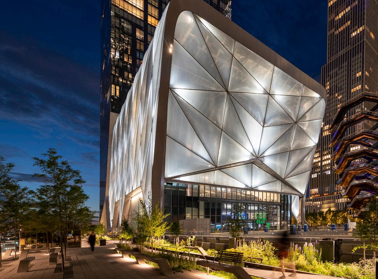 The Shed, un extraordinario espacio cultural camaleónico, ubi cado en Hudson Yards e iluminado por los proyecto res Grasshopper de ERCO