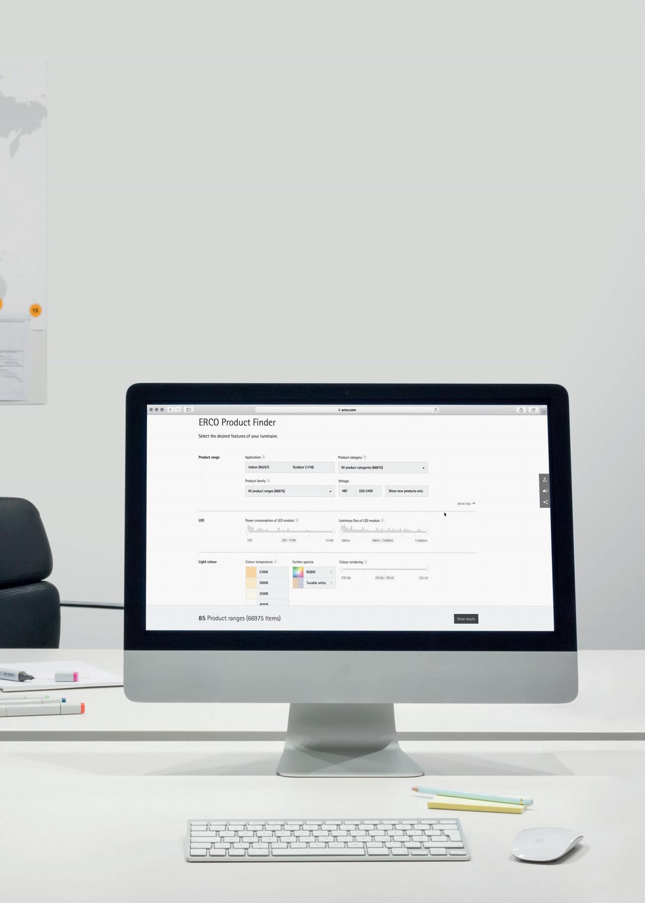 Encuentre rápidamente la luminaria adecuada con el Product Finder en erco.com