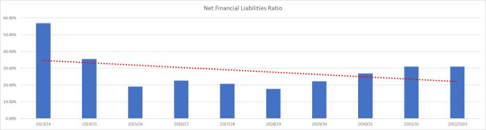 Although the long-term financial plan provides useful information for financial sustainability measurement the LRC also produces a strategic 10-year summary of capital expenditure ‘outlays’ and funding. This is a useful tool to ensure that capital outlays will be fully funded, effective management of short-term borrowing (cash advance debentures) and it highlights any annual volatility in borrowing needs for intergenerational assets. Refer table on page 34