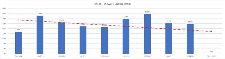 Councils are the custodians of a substantial investment in infrastructure assets. LRC analysis indicates that approximately 60% of total capital and operating outlays are related to this infrastructure. LRC approves a longterm Infrastructure Asset Management Plan (IAMP) to ensure that it is aware of the need to develop and replace its infrastructure assets to meet the service delivery expectations of the community. The IAMP is integrated into the long-term financial plan (LTFP) which is amended each year. Council also monitors relevant key performance indicators (KPI) to keep abreast of its infrastructure developments and ambitions. For example, the required ‘Asset Renewal Funding Ratio’ is forecast, but also the relationship being depreciation expense (the measure of the annual consumption of assets) and annual asset renewal expenditure is monitored.