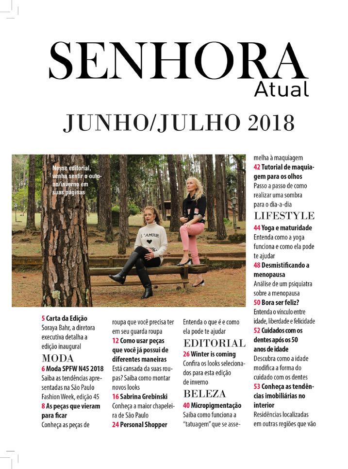 O primeiro contato com o design gráfico e editorial foi para a concepção da revista de moda Senhora Atual, publicação voltada para mulheres acima de 50 anos de idade. Participando das primeiras edições, toda parte de arte e diagramação foi concebida por minha própria autoria.
