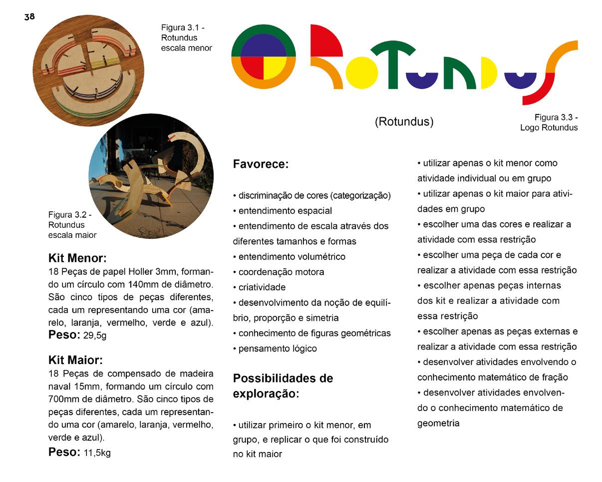 Final de Graduação do curso de Arquitetura e Urbanismo da USP. A proposta do trabalho era a reflexão, proposição e produção de um brinquedo, intitulado Rotundus, que trabalha as questões de volume, escala e espacialidade para crianças de cinco a sete anos de idade. Esse brinquedo era formado por um conjunto de dois tipos que se intercalavam nos quesitos forma, modularidade, sistema de encaixe e cores.