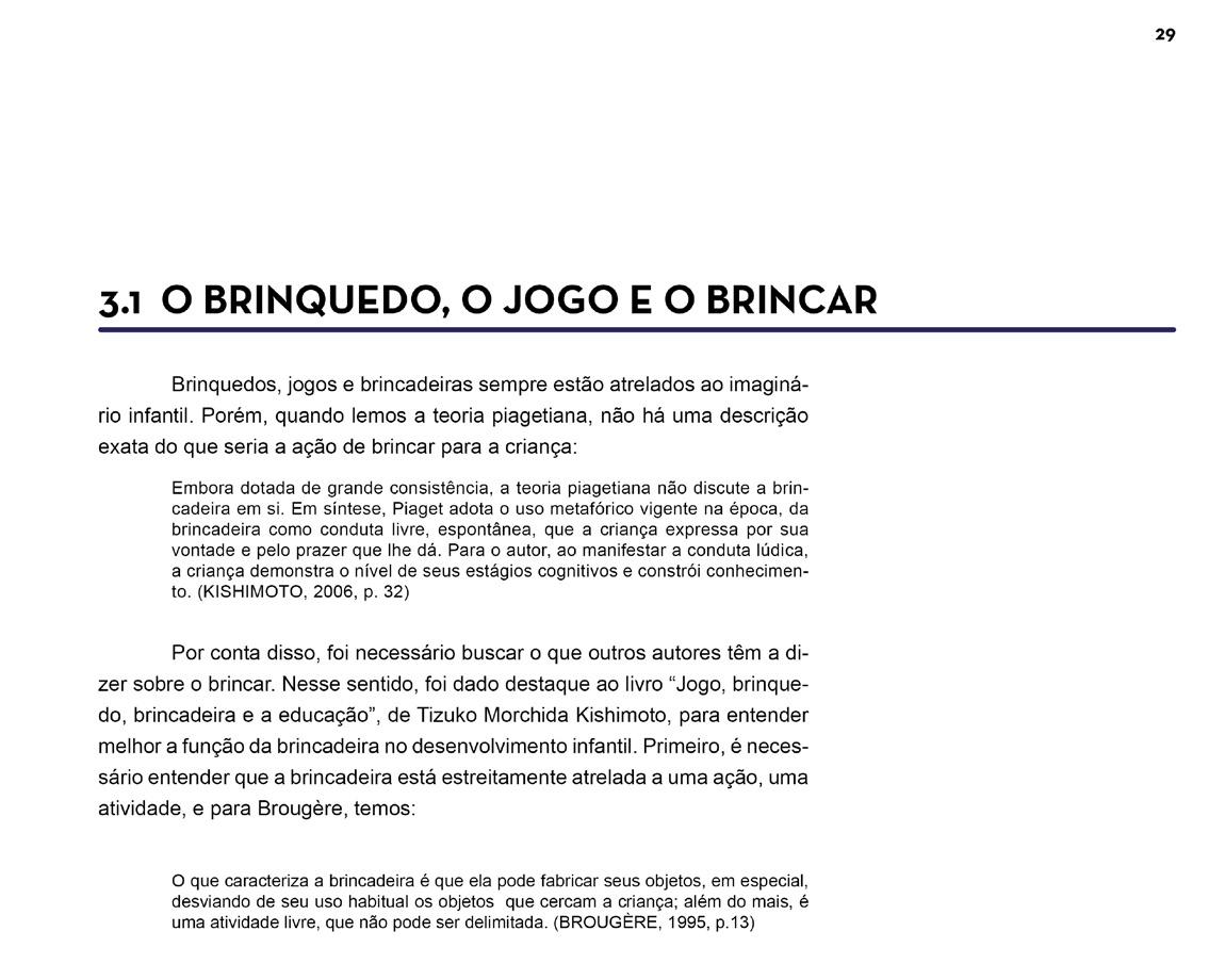 Para a confecção do caderno, devido ao isolamento social causado pela COVID-19, decidiu-se pela produção online, utilizando mecanismos interativos no formato PDF, como o sumário por exemplo. O maior desafio foi trazer aspectos que pudessem remeter ao imaginário infantil e ao próprio brinquedo, utilizando-se das cores e formatos redondos para tornar a questão gráfica de alguma maneira lúdica.