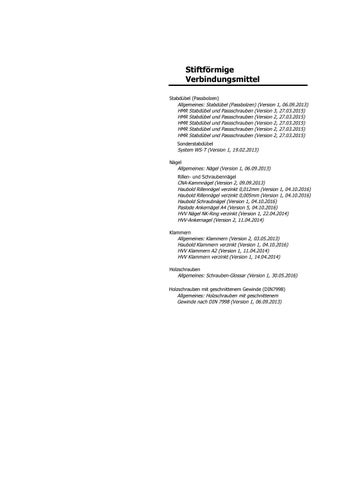 Stiftförmige Verbindungsmittel Stabdübel (Passbolzen) Allgemeines: Stabdübel (Passbolzen) (Version 1, 06.09.2013) HMR Stabdübel und Passschrauben (Version 3, 27.03.2015) HMR Stabdübel und Passschrauben (Version 2, 27.03.2015) HMR Stabdübel und Passschrauben (Version 2, 27.03.2015) HMR Stabdübel und Passschrauben (Version 2, 27.03.2015) HMR Stabdübel und Passschrauben (Version 2, 27.03.2015) Sonderstabdübel System WS-T (Version 1, 19.02.2013) Nägel Allgemeines: Nägel (Version 1, 06.09.2013) Rillen- und Schraubennägel CNA-Kammnägel (Version 2, 09.09.2013) Haubold Rillennägel verzinkt 0,012mm (Version 1, 04.10.2016) Haubold Rillennägel verzinkt 0,005mm (Version 1, 04.10.2016) Haubold Schraubnägel (Version 1, 04.10.2016) Paslode Ankernägel A4 (Version 5, 04.10.2016) HVV Nägel NK-Ring verzinkt (Version 1, 22.04.2014) HVV-Ankernagel (Version 2, 11.04.2014) Klammern Allgemeines: Klammern (Version 2, 03.05.2013) Haubold Klammern verzinkt (Version 1, 04.10.2016) HVV Klammern A2 (Version 1, 11.04.2014) HVV Klammern verzinkt (Version 1, 14.04.2014) Holzschrauben Allgemeines: Schrauben-Glossar (Version 1, 30.05.2016) Holzschrauben mit geschnittenem Gewinde (DIN7998) Allgemeines: Holzschrauben mit geschnittenem Gewinde nach DIN 7998 (Version 1, 06.09.2013)