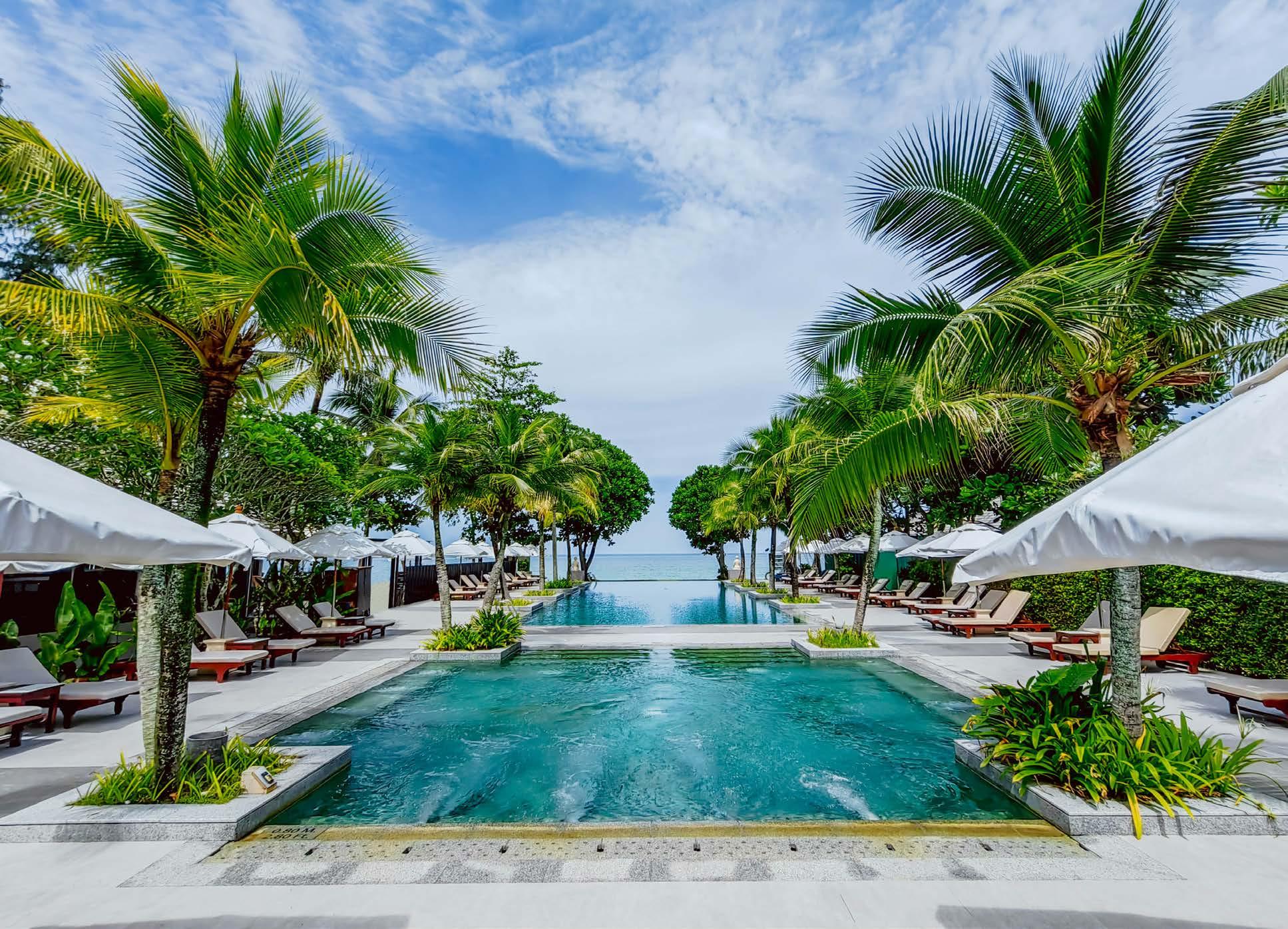 With 65 rooms, from the stunning Grand Deluxe to the spacious One-Bedroom Seaview Suite, the resort immerses guests in an Asianinspired sanctuary surrounded by majestic palm and coconut trees. Each room offers breathtaking views of the beachfront swimming pool and pristine white sand beach.