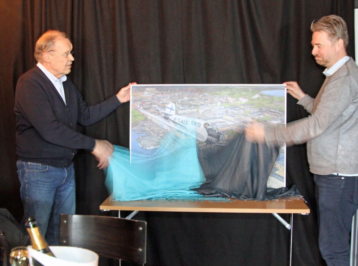 Kari Vertasen Aeron Junkers F 13 -lentoa kuvaava juhlamaalaus paljastettiin virallisesti lentäjäkunnalle kuppilatiimaa harjoittavan AY-kymppi -ryhmän tilaisuudessa Pohjois-Helsingissä huhtikuun 2024 alussa osana juhlavuoden tapahtumia. Sittemmin maalaus on ollut esillä Finnairin pääkonttorin HOTT:n (House of travel and Transportation) aulassa Finnairin taiteilijoiden näyttelyssä. Toistaiseksi voimassa olevan tiedon mukaan juhlamaalausta voi ihailla jatkossa Suomen Ilmailumuseon kokoelmissa.