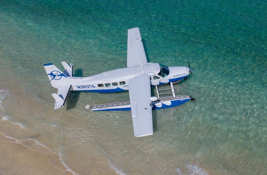 Sun`n Funissa juhlittiin nykyajan työhevosen, Cessna Caravan laivaston, 25 miljoonaa lentotuntia. Kovissa olosuhteissa koeteltuja ja äärimmäisen luotettavalla Pratt & Whitney PT-6A-potkuriturbiinimoottorilla varustettuja Caravaneja ja pykälää suurempia Grand Caravaneja löytyy lähes joka puolelta maapalloa. Konetyyppi on myös kotonaan kellukkeilla operoidessa vaikkapa Floridan ja Bahaman turkoosinvärisissä vesissä. Kuva: Wikipedia/Tropic Ocean Airways.