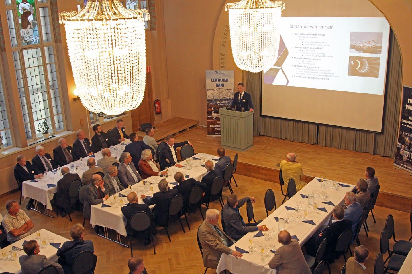 Työtovereiden kohtaamisen jälkeen illan toinen merkittävä kohokohta on SLL:n puheenjohtajan katsaus nykypäivään. Tuore SLL:n puheenjohtaja Vesa Uuspelto avasi seniori-illallisen positiivisissa merkeissä, sillä Finnairin lentäjämäärä oli juuri ylittänyt tuhannen lentäjän rajan. Kyseinen raja ylittyi hetkeksi jo ennen pandemiaa, mutta lentäjien määrä putosi tuolloin nopeasti eläköitymisten myötä noin 820 lentäjään. Paljon puhuttu uusi normaali jäi kuitenkin tulematta ja lentomatkustus elpyi nopeasti rajoitusten poistuttua. Suomessa ollaan kuitenkin edelleen jäljessä pandemian jälkeisessä kehityksessä, sillä lentämisen kysynnän elpyminen vaikuttaa tulleen yllätyksenä. Eläköitymisten myötä tapahtuneen lentäjäpoistuman paikkaamista ei aloitettu tarpeeksi ajoissa ja nyt myös lentokonetilanne on haastava. Laajarunkokoneilla lennetään reittejä Eurooppaan ja uusien kapearunkokoneiden toimitusajat ovat pitkiä eivätkä uudet koneet ole myöskään ongelmattomia. Tämä on osaltaan nostanut myös käytetyn kaluston hintoja sekä leasingvuokria. Näistä huolimatta alan tilanne näyttää hyvältä, vaikka jälleen esiintyykin perinteistä kiihdytetyn kasvun kipuilua. Kasvu ja noste kuitenkin toivottavasti jatkuvat.
