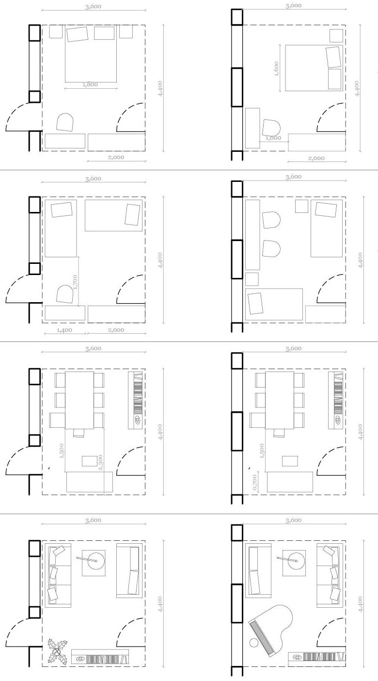 Possible variations of the 15 m2 room