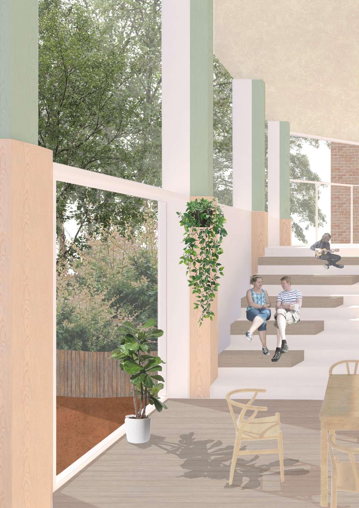 On the left: Rendering from the entrance | ArchiCAD, Enscape