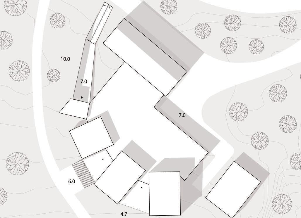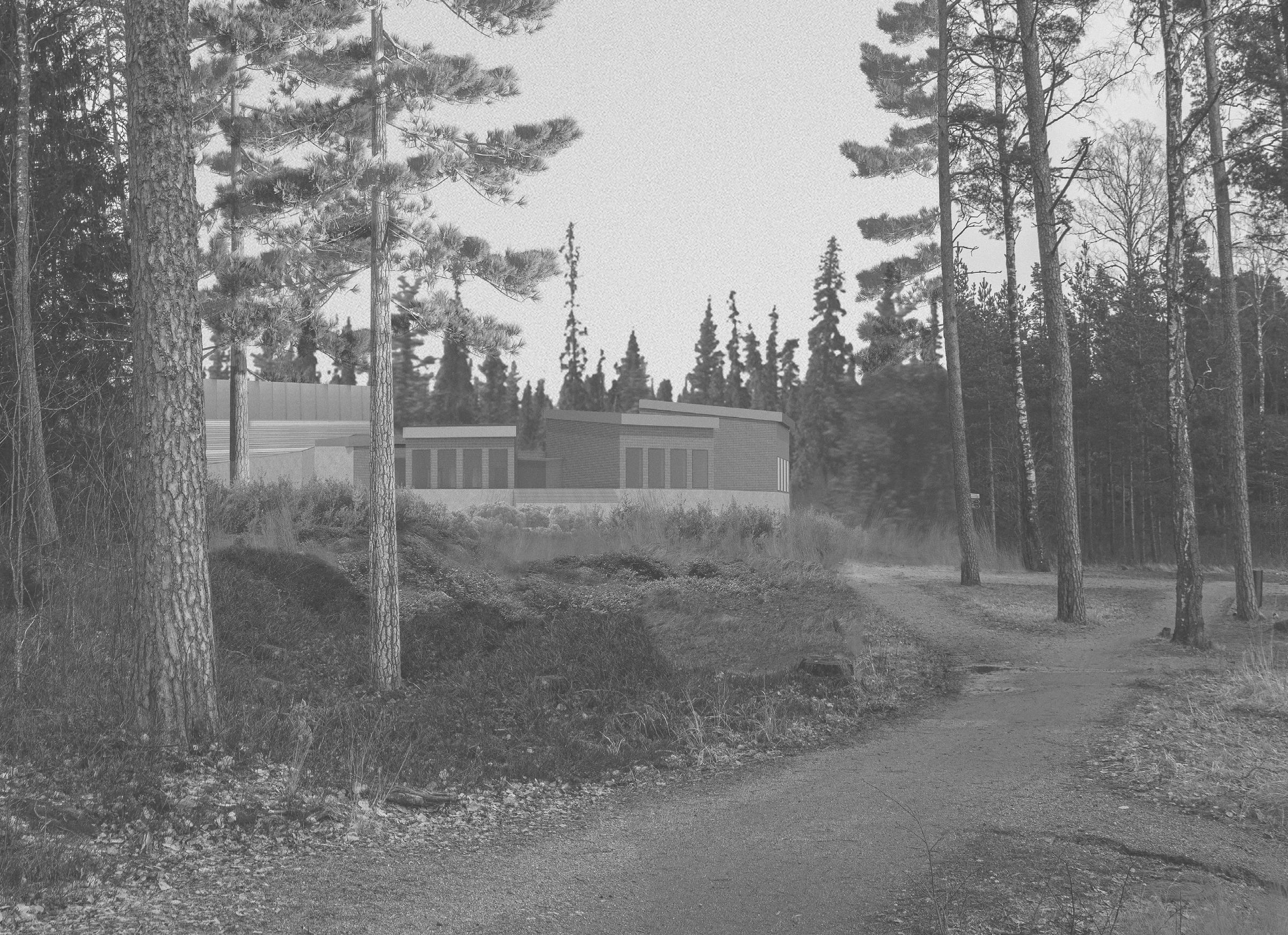 The task was to design a cafe and exhibition pavilion in Espoo’s Karhusaari. Since Karhusaari is an exceptionally beautiful natural environment, I focus on beautiful natural views towards forests and the sea in my work. On the building site I have chosen, there is an old rihi, which is included in the plan as an active part of the pavilion by converting the old building into an exhibition space. The other spaces are designed to stick to the side of the barn in a fan-like shape.