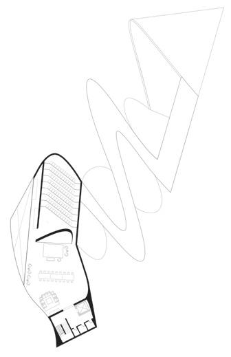 The sinuous form of the library is an expression of the circulation that prioritizes the immersion into the Chinatown Library, suggesting a winding path in which all programs are experienced. The elevation of the library is inverse to the entry ramp for I-93. Instead of descending into the tunnel and exiting the Chinatown neighborhood, the form of the library ascends with the programs transitioning from individual reflection at the lowest point to community-centered programs at the highest point offering views of the Chinatown gate and neighborhood.