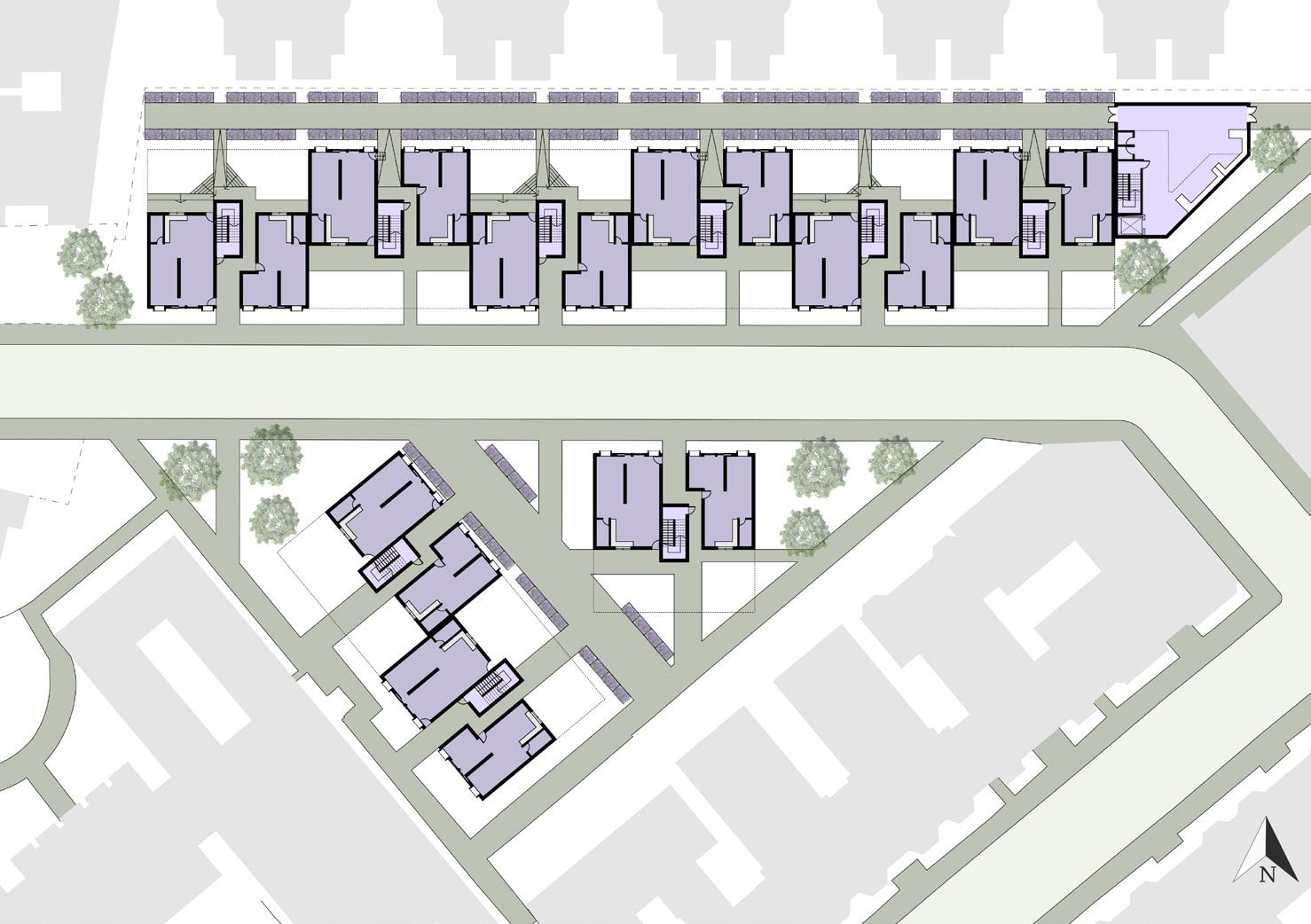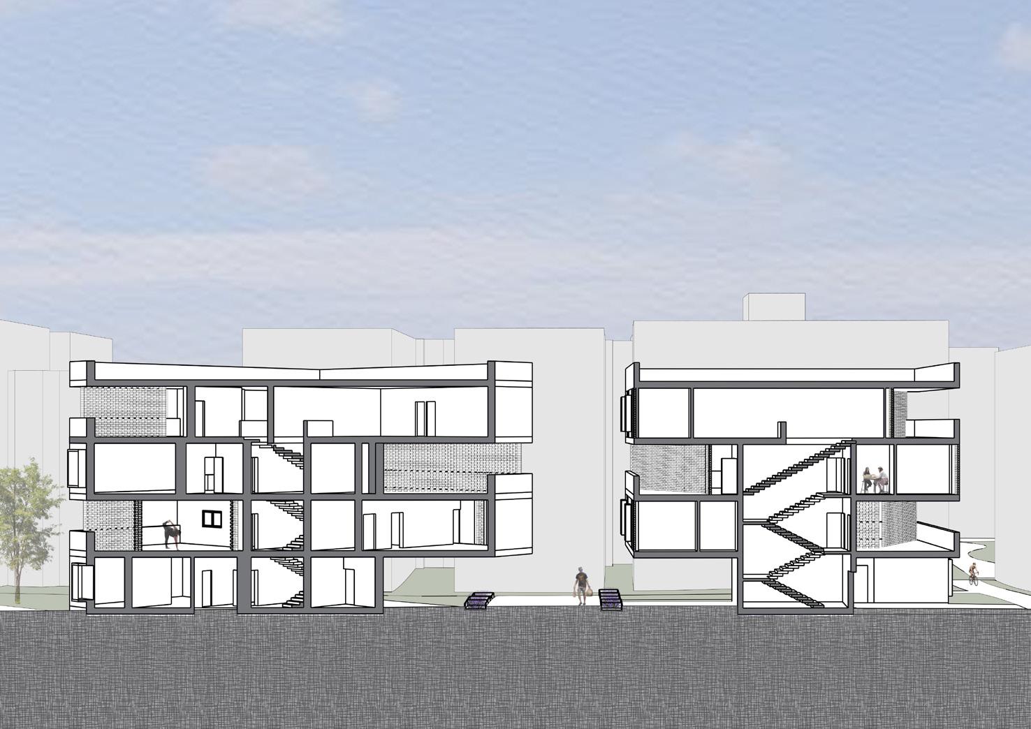 This project was created as part of the Urban Housing Studio, in which we were tasked with designing modular walk-up housing. The modular housing then had to be arranged onto the site, located on the North Parking Lot near Northeastern University.