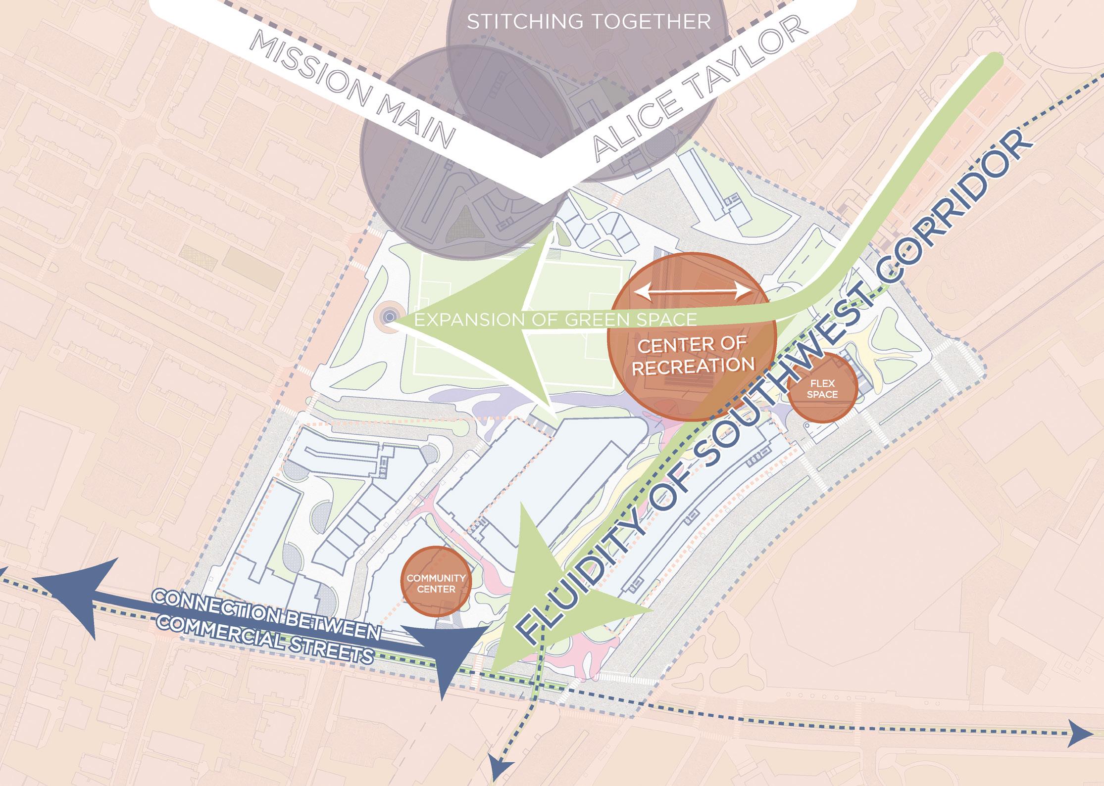 Fluidity: Continue the Southwest Corridor through the site maintaining its look and feel.