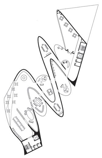 ambiguous form, its fluid movement, and folds all communicate in an architectural