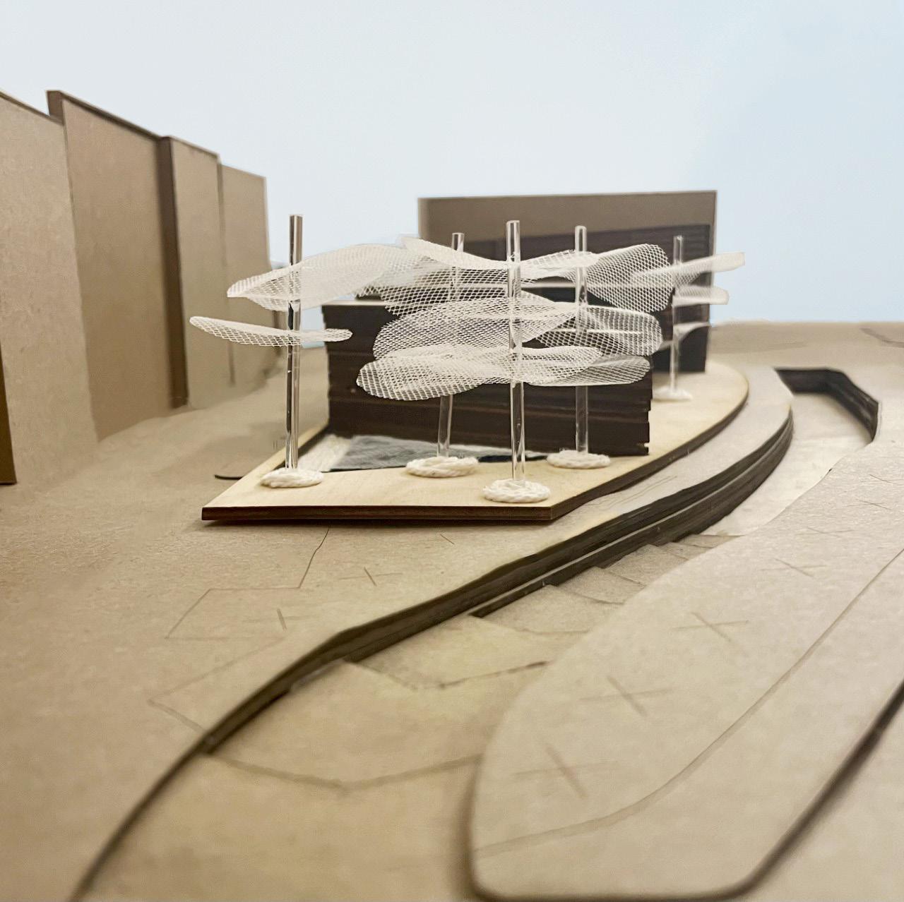 membrane exists as an extension provides shade from the sun, scales allows water to drip paper. It is an extension of building that is able to provide its fluid movement, and communicate in an architectural