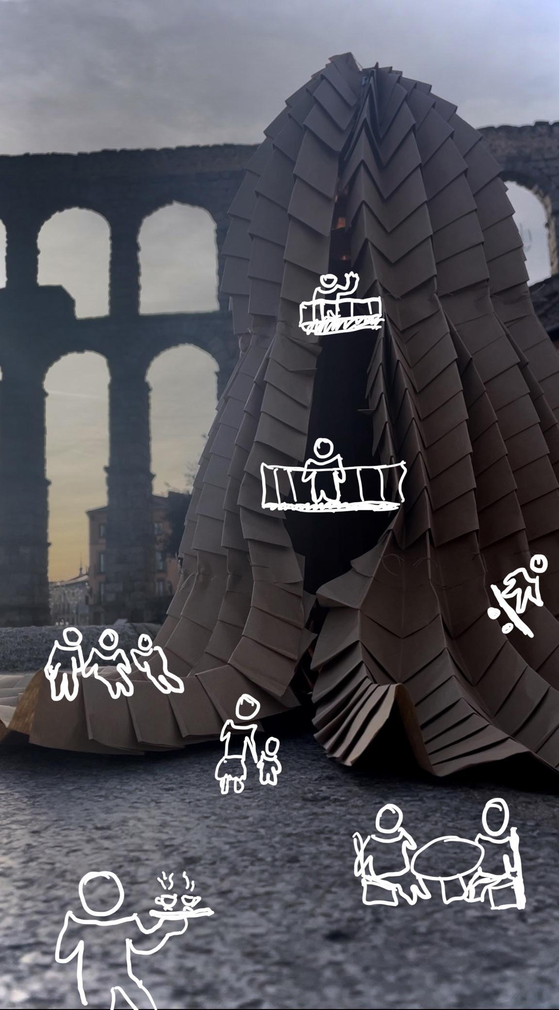 city, this membrane exists as an extension safe haven. It provides shade from the sun, the form of the scales allows water to drip penetrating the paper. It is an extension of extension of a building that is able to provide desired.