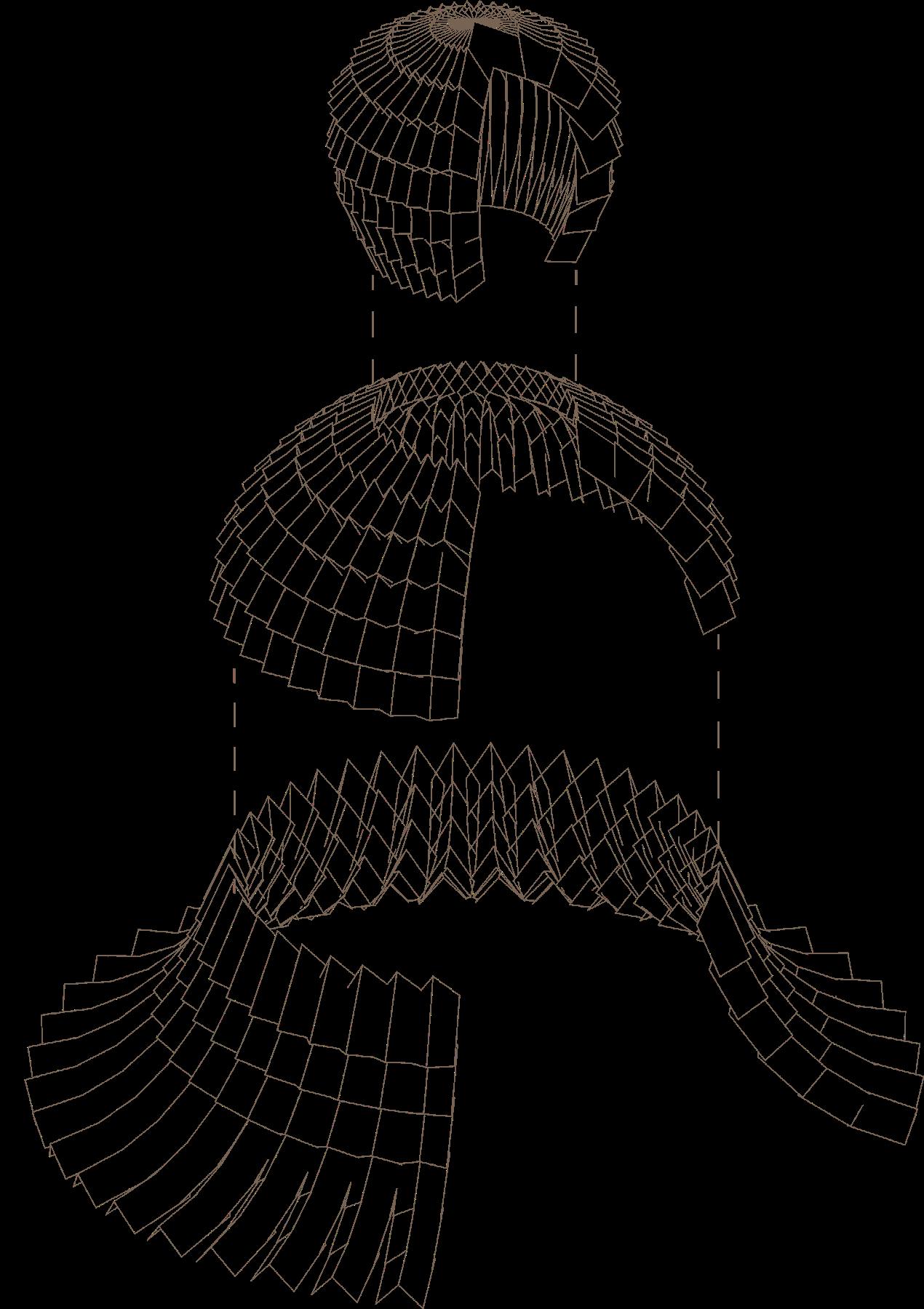 At the scale of the city, this membrane exists as an extension of the body, as a portable safe haven. It provides shade from the sun, and its waxy material with the form of the scales allows water to drip off the membrane without penetrating the paper. It is an extension of the body, but also an extension of a building that is able to provide shelter wherever it is desired.
