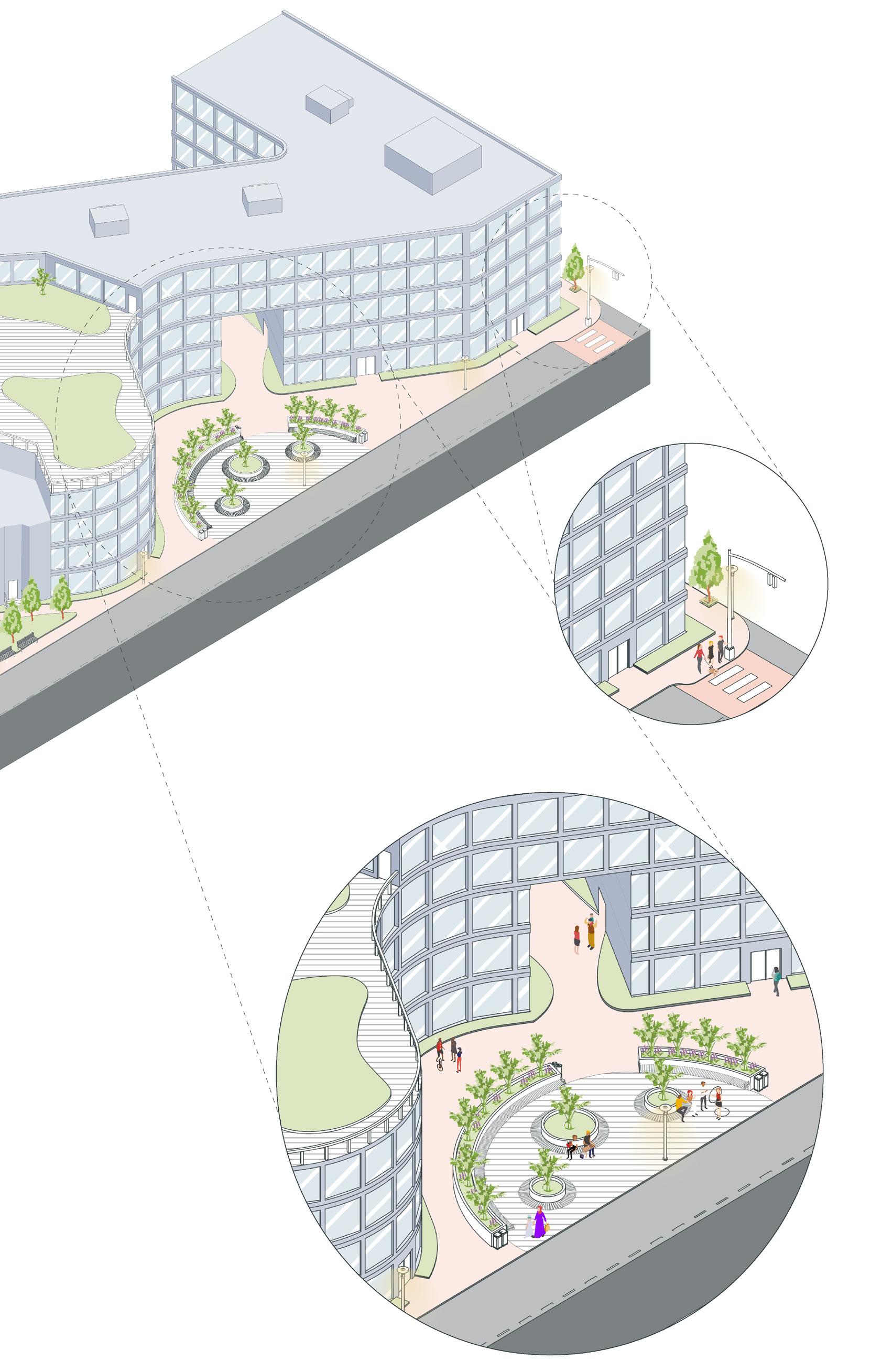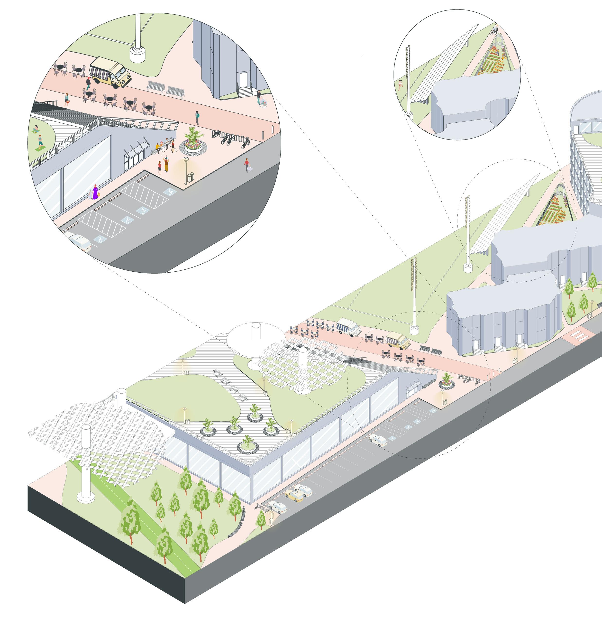 Transportation Hub: Celebrating alternative forms of transportation with an emphasis on making the site more pedestrian accessible.