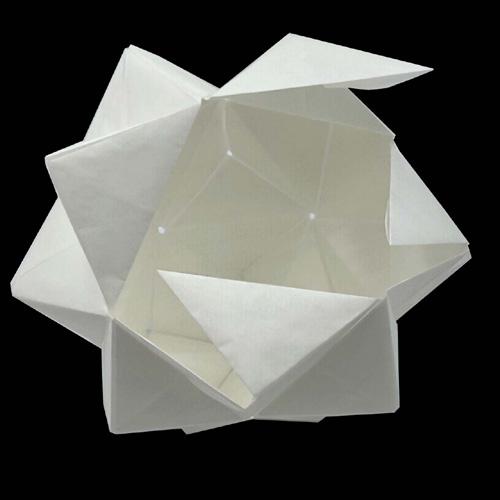 At the scale of the body, the membrane exists in both an open and closed state. In its open state, the user can experience their current environment, able to connect with anything and everything in sight. In its closed state, the membrane serves as a place of retreat. The sounds of the world become softer inside the enclosed membrane. A warm glow through the folded paper replaces the distractions of the world. Inside the membrane, one can fully connect with oneself, regardless of where they are. The membrane’s ambiguous form, its fluid movement, and the structural rigidity of its folds all communicate in an architectural manner. It is architecture.