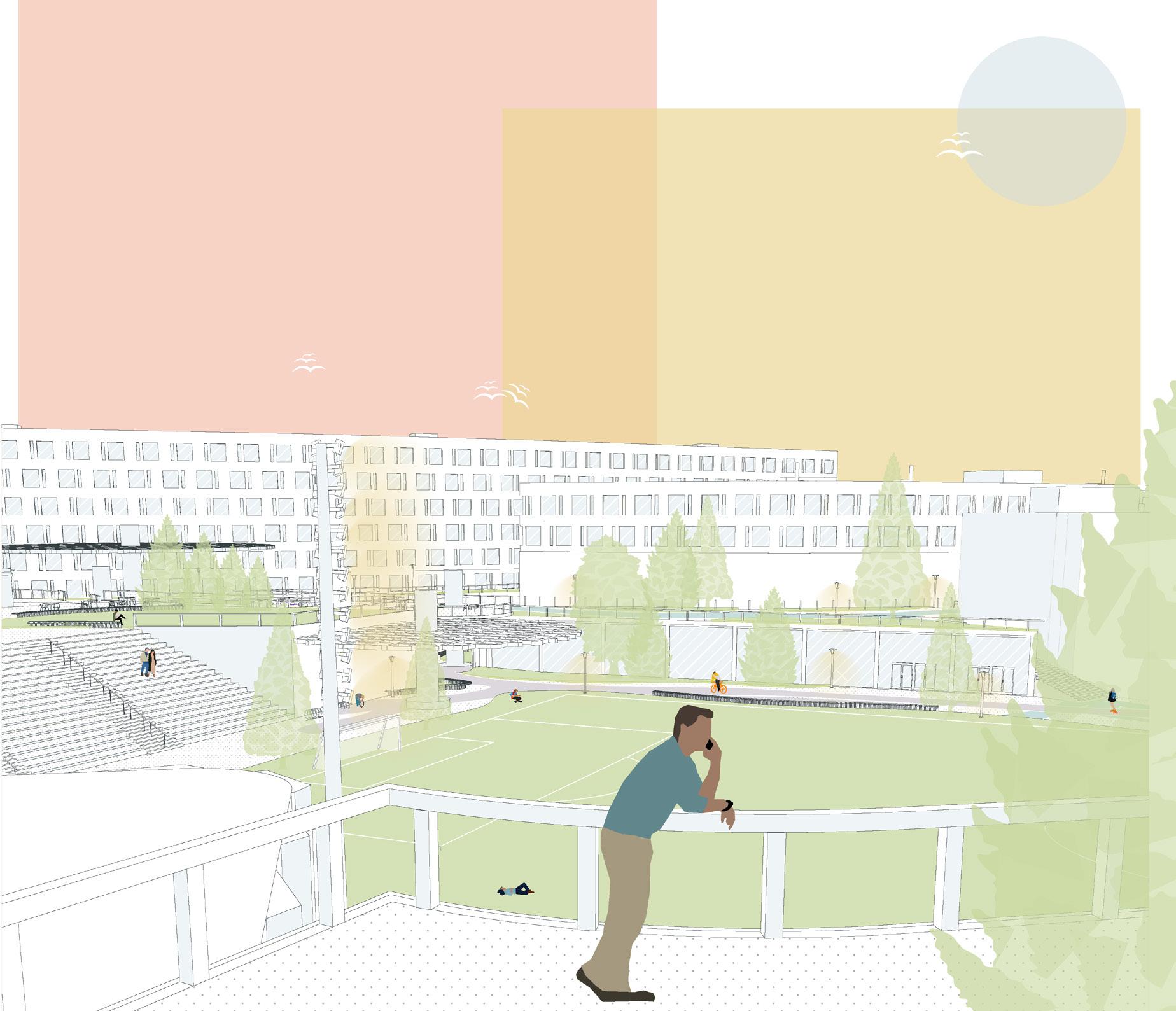 9. Outdoor spaces that are directly adjacent to the field must be programmed as community-oriented spaces, such as a community garden or playground.