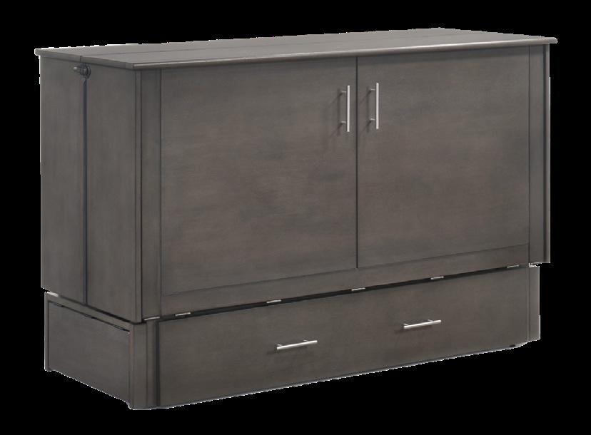 Convert it from a handsome cabinet to a comfy queen bed in less than a minute. When all closed up it just takes 10 square feet of floor space with a premium gel memory foam mattress. Perfect for a loft area or bonus room. Easy to use, easy to love. Select Models $2199 to $2,599 23.7”63.5” 41.1” Visit our Murphy Cabinet Shop at SANDPOINTFURNITURE.COM