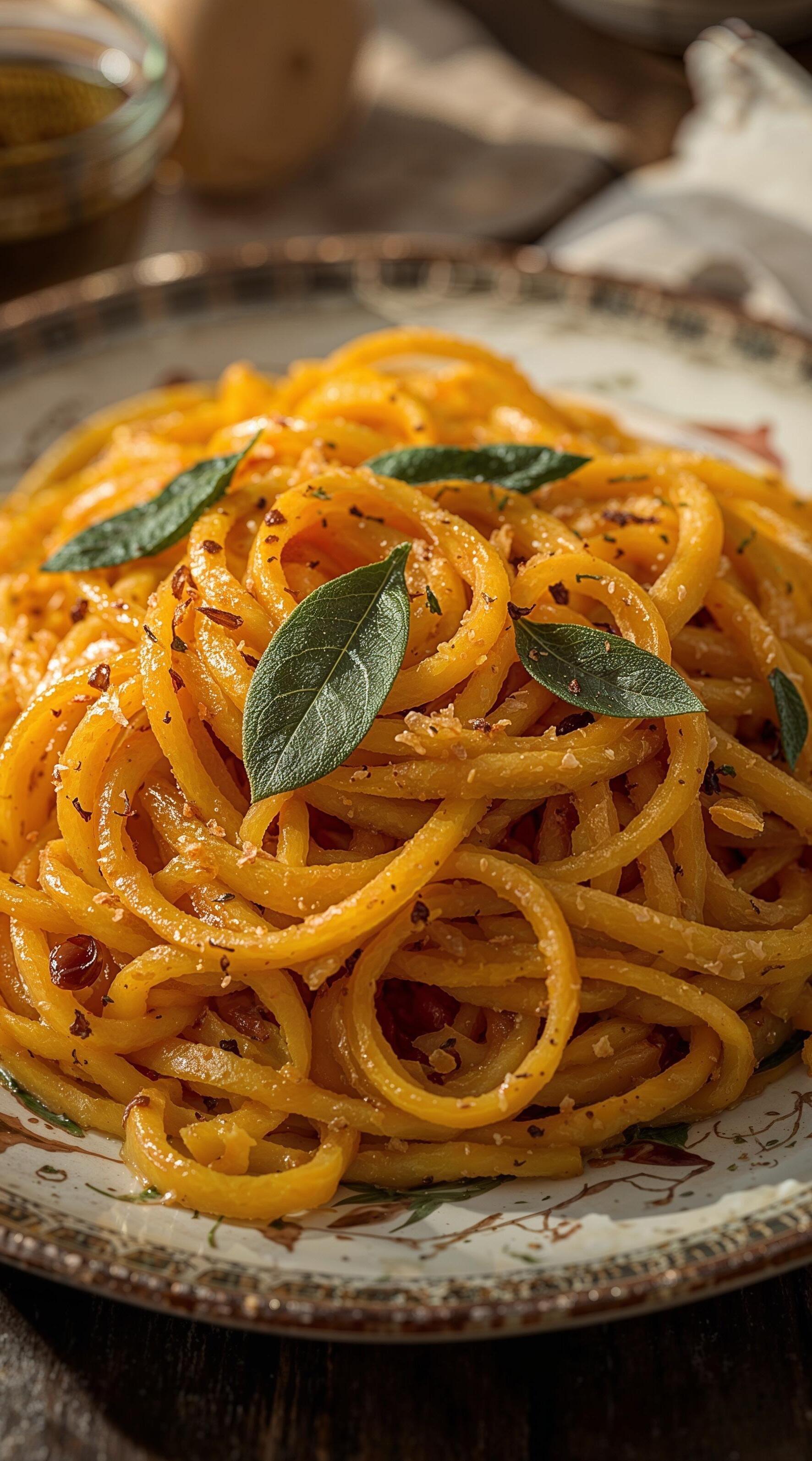 • Plate the pasta and top with crispy sage leaves, toasted nuts (if using), and extra Parmesan.