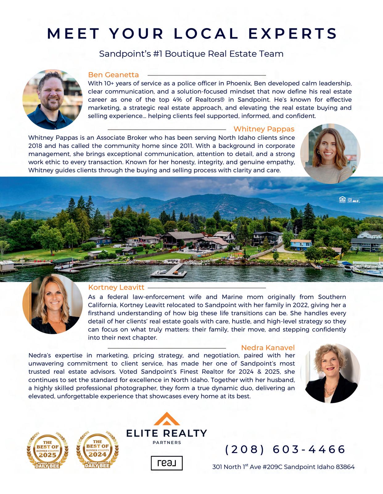 Over the years, Jackie has consistently ranked among the top 10% of Realtors® in North Idaho. Her experience allows her to guide clients through every type of transaction, from first-time homebuyers to retirees relocating and investors seeking maximum returns. She approaches each transaction with careful research, strategic planning, and thoughtful communication, ensuring her clients understand every step of the process.