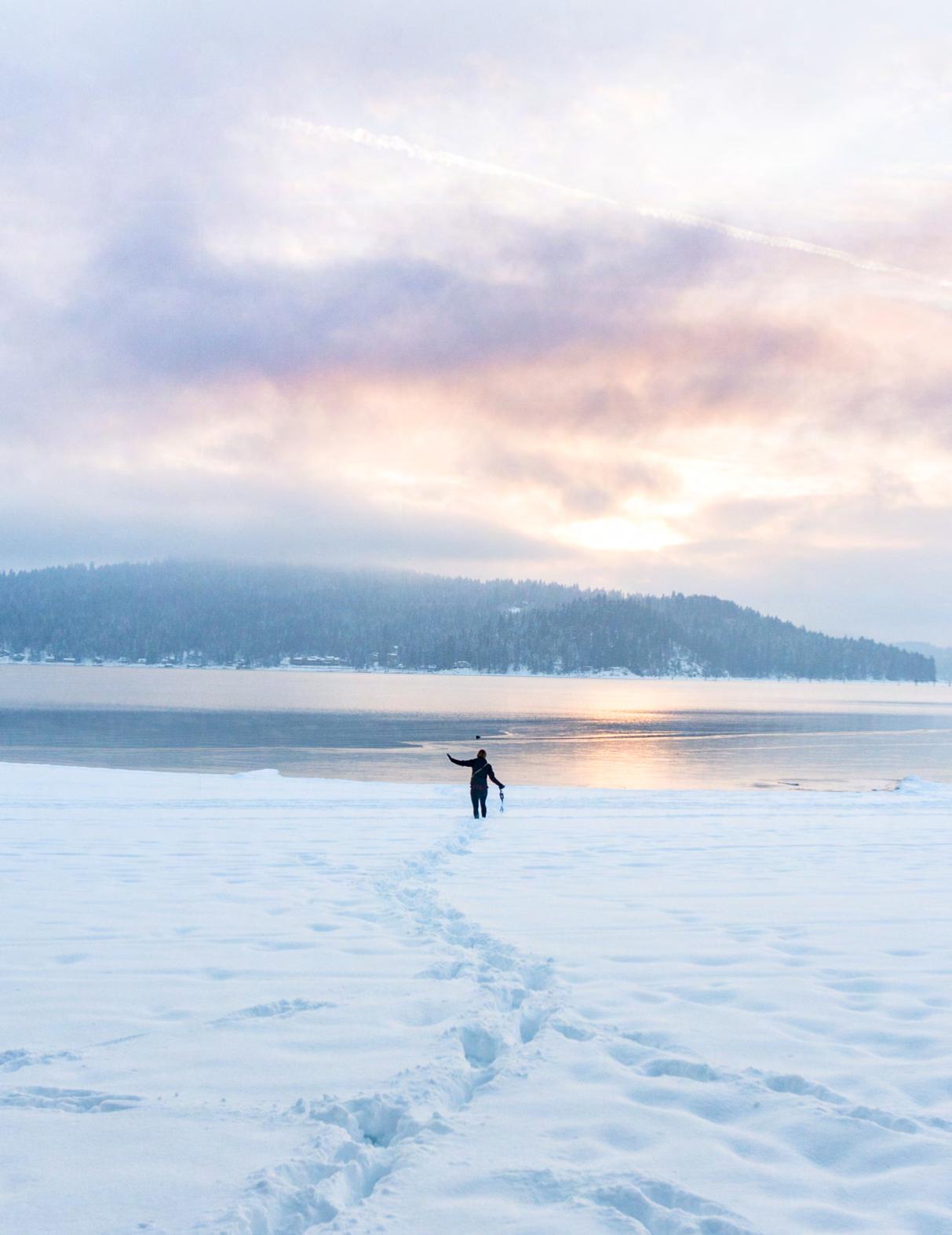 There’s a stillness that settles over the Inland Northwest when winter shows up, the kind that doesn’t announce itself; it just arrives. You feel it more than you see it. The lakes go quiet. Fog drapes low over the water. Smoke climbs steadily from a chimney, untouched by wind. The noise fades, and for the first time in months, nobody’s in a rush to fill the silence.