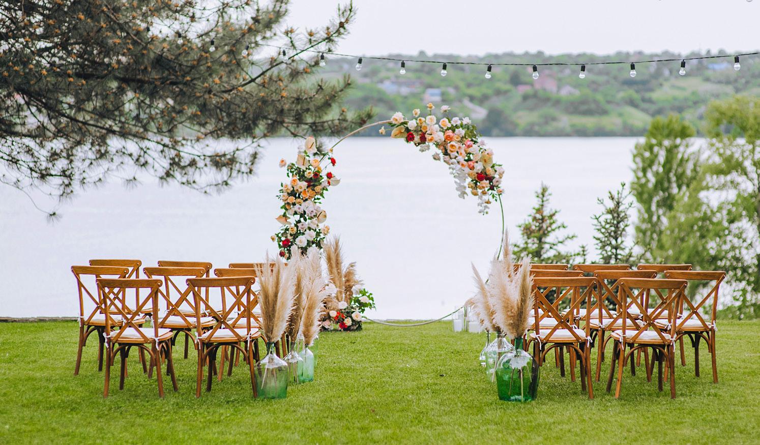 The first thing to think about, before you even start setting up, is the garden itself. Nothing really much has to be done in backyard spaces that already have lots of green. No special color is needed. If anything, the beauty of the grass or simplicity of the trees will speak for themselves. The only real thing to do is to clean it up a bit. Clear off dead foliage, put in new mulch, and trim flowers and hedges. Your ceremony can be focused around your favorite spaces, such as the old