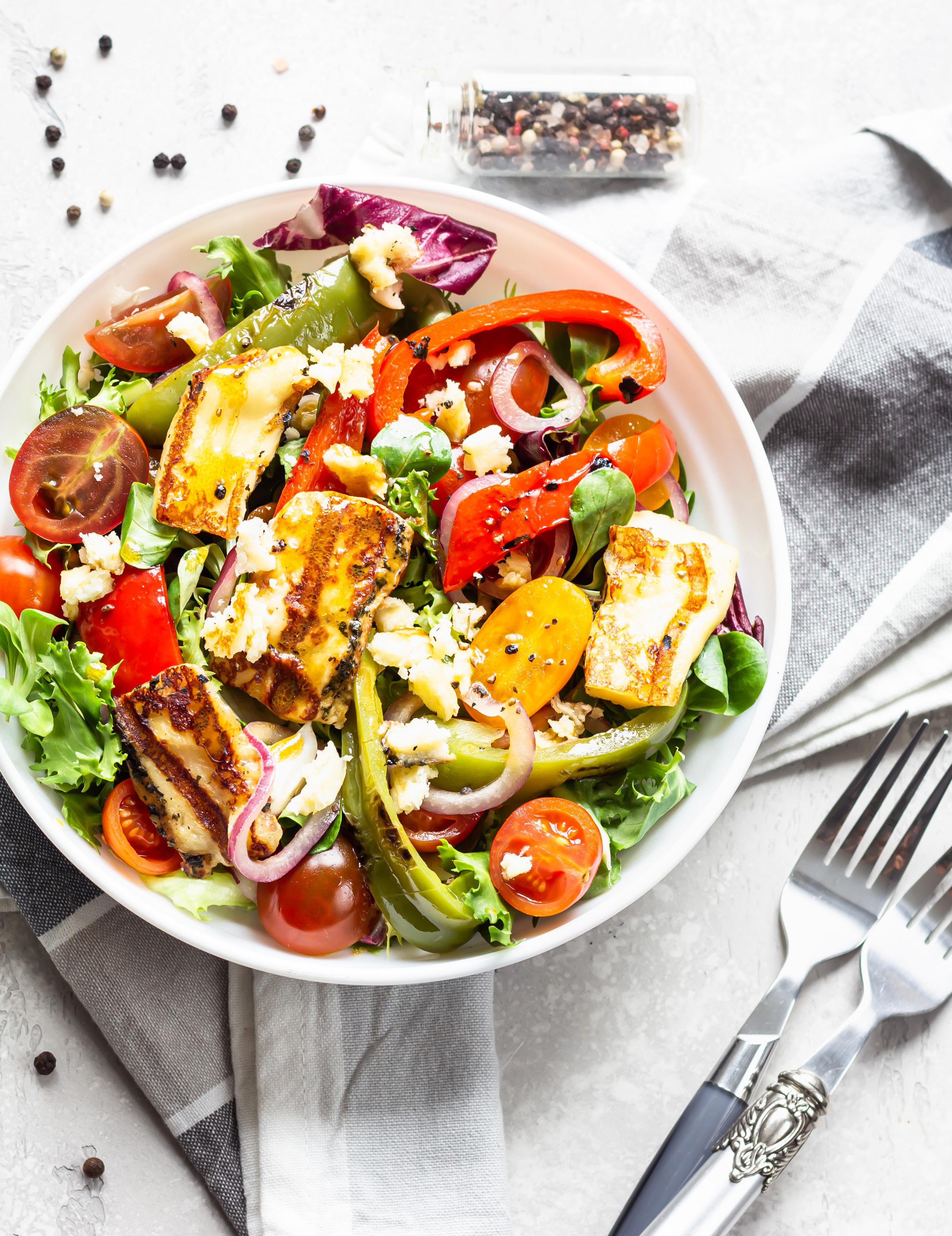 • Once all veggies are cut proportionally (close to the same size so they cook equally), lightly coat with canola oil, and season with kosher salt and fresh cracked black pepper.