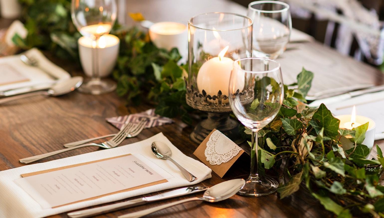 One of the problems that everyone experiences when holding events in large open spaces is distinguishing space—where to gather, eat, dance, and hold the ceremony. Pick a distinguishing factor from your yard. Maybe it’s a favorite tree or a patch of rose bushes. Maybe there’s some lovely ivy growing along the fence. Whatever it is, have that be the backdrop to the ceremony. Here you can place an archway, two groups of chairs to create the aisle, and an aisle runner. Rugs work well as aisle runners because they sit well in the grass without shoes going through them—and look stunning. Consider renting a dance floor for dancing, and designate tables and chairs close by for the reception. Large white tents (with heaters for evening weddings) or runner lights strung across the yard and trees can both designate a reception space, or unify