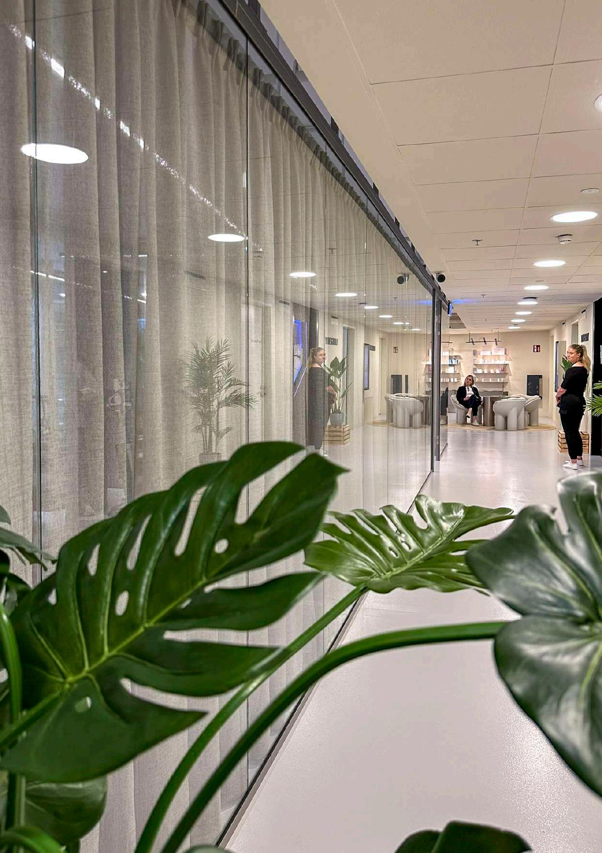 A warm-toned aluminum frame finish brings a refined touch to the entire space. To enhance the atmosphere further, we added lush greenery throughout, including PlantBox living walls with an automatic irrigation system.