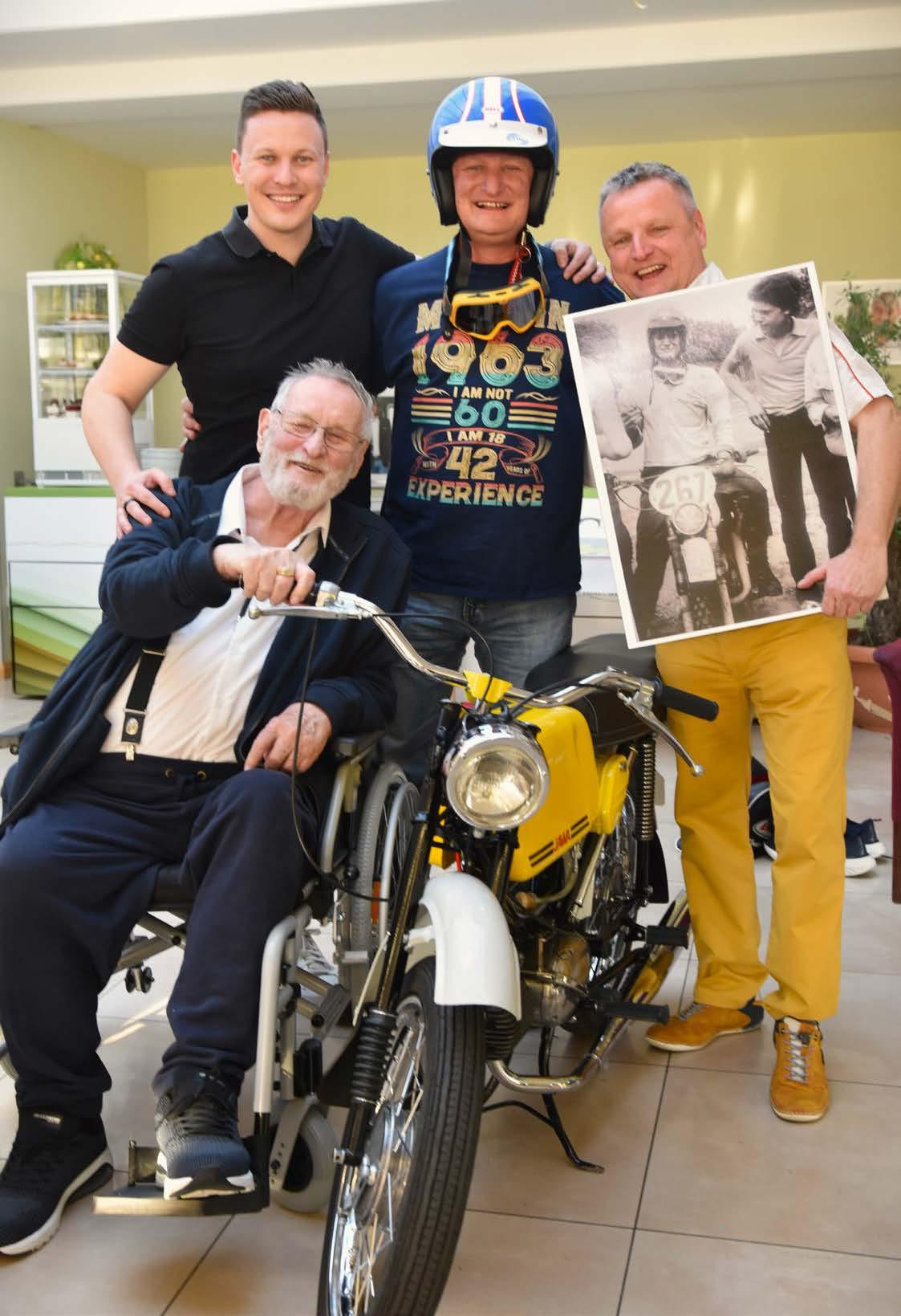 Miloval vše, co dělal, a měl rád lidi okolo sebe. Fešák v kožené bundě si opravenou motorku vyzvednul ve chvíli, kdy šli okolo chlapi z kostela do nedaleké hospody a obdivovali motorku právě vytlačenou z průjezdu. V tu chvíli děda spiklenecky mrknul do foťáku, ruce od šmíru, kravata na krku a radost nad dobrým dílem v srdci a tu mu nemohla pokazit ani babička hubující nad tím, že se ani nepřevléknul. Úplně cítím jeho rozpoložení v té chvíli.