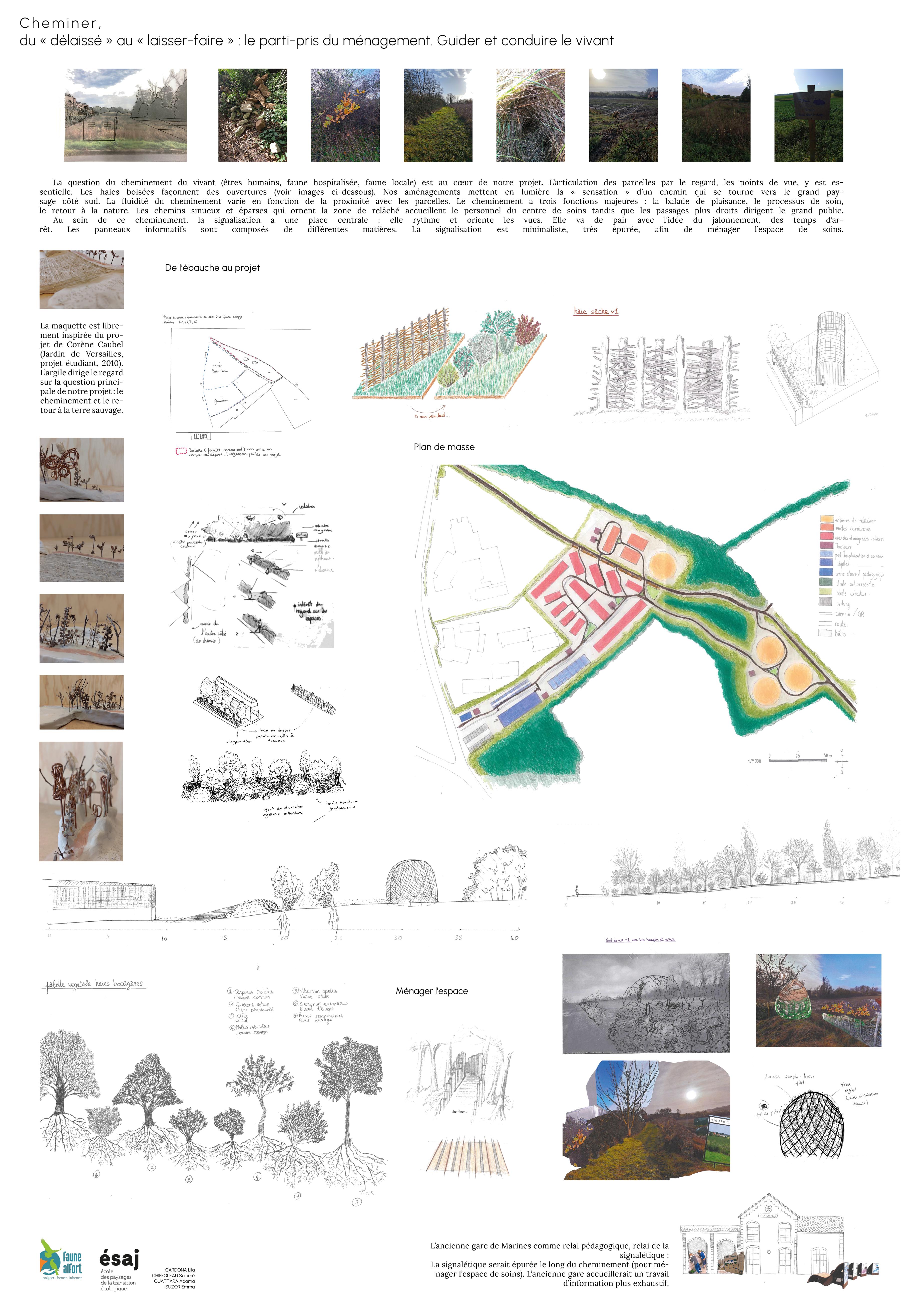 Dans ce projet situé au pied d’une cité, j’ai voulu la réappropriation de la friche par ses habitants à travers la revalorisation de la terre par étapes, dans une démarche de régénération du sol. J’ai d’abord implanté une prairie mésophile adaptée aux caractéristiques du sol et au climat local afin d’améliorer la structure, la fertilité du sol, de favoriser la diversité faunistique et floristique et d’enrichir le sol en matière organique. J’ai ensuite mis en place une forêt comestible, mêlant arbres fruitiers, arbustes et plantes vivaces. Enfin, j’ai sanctuarisé certaines zones boisées, laiss ées en libre évolution.