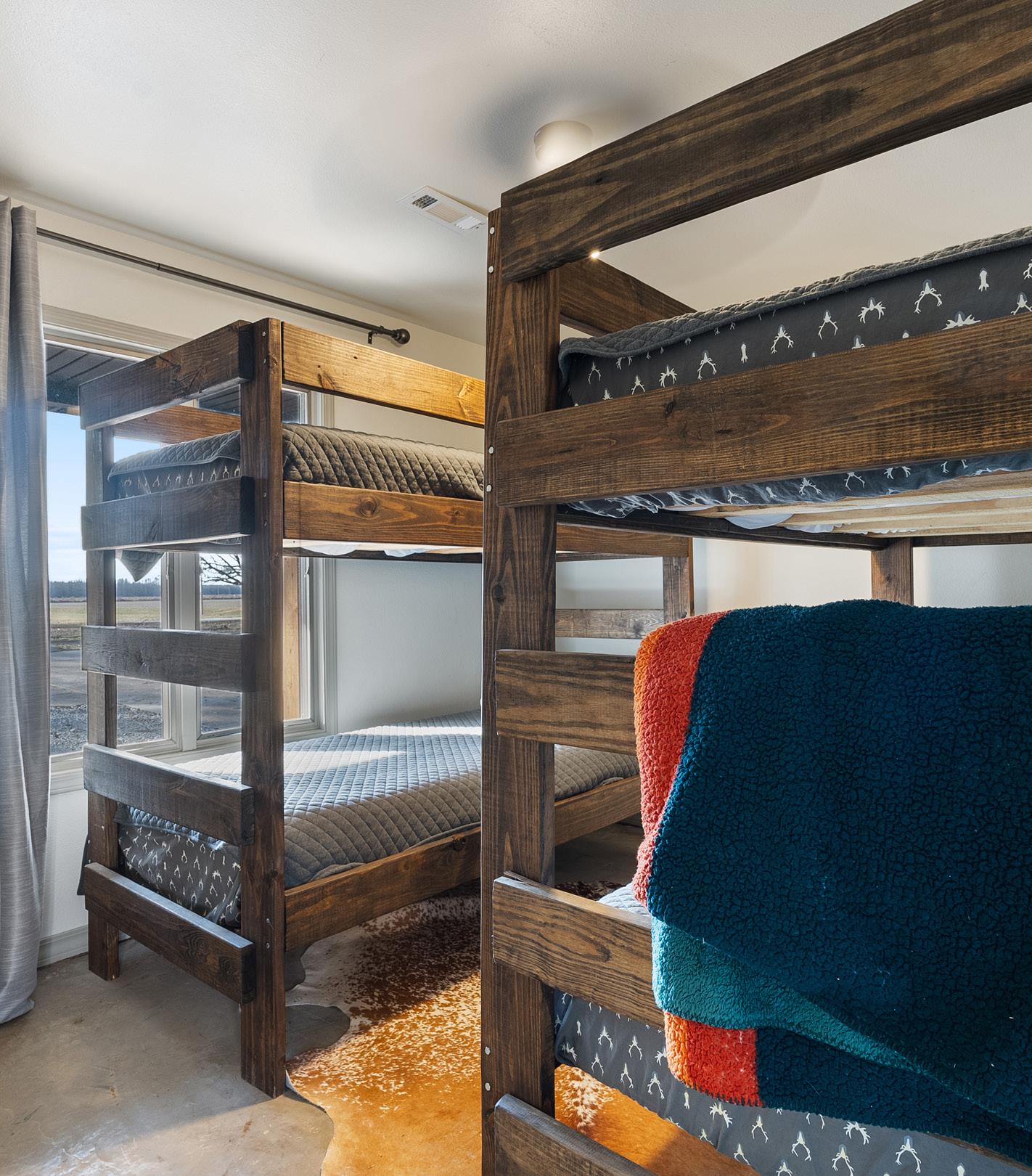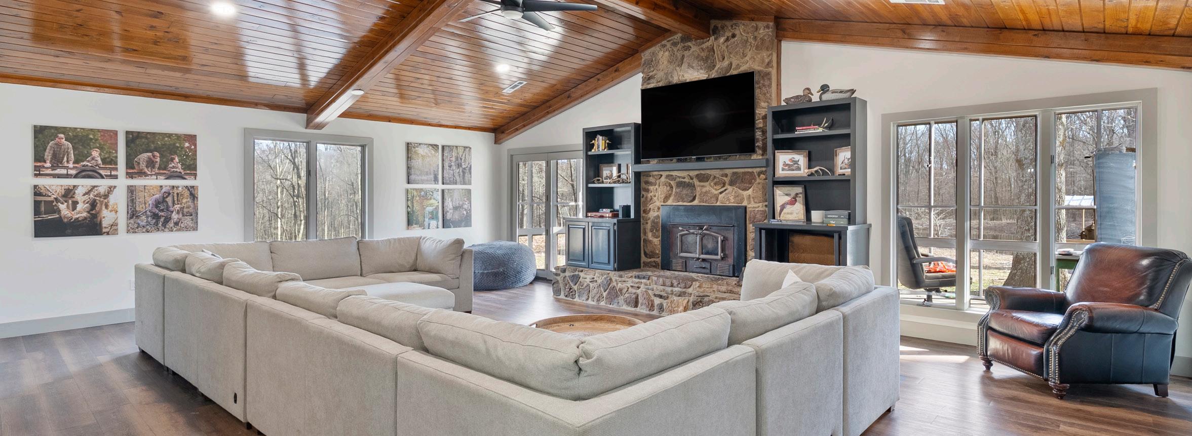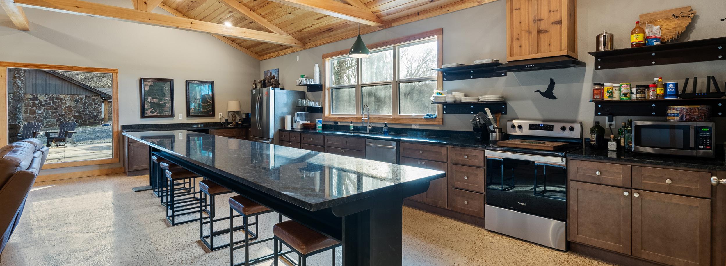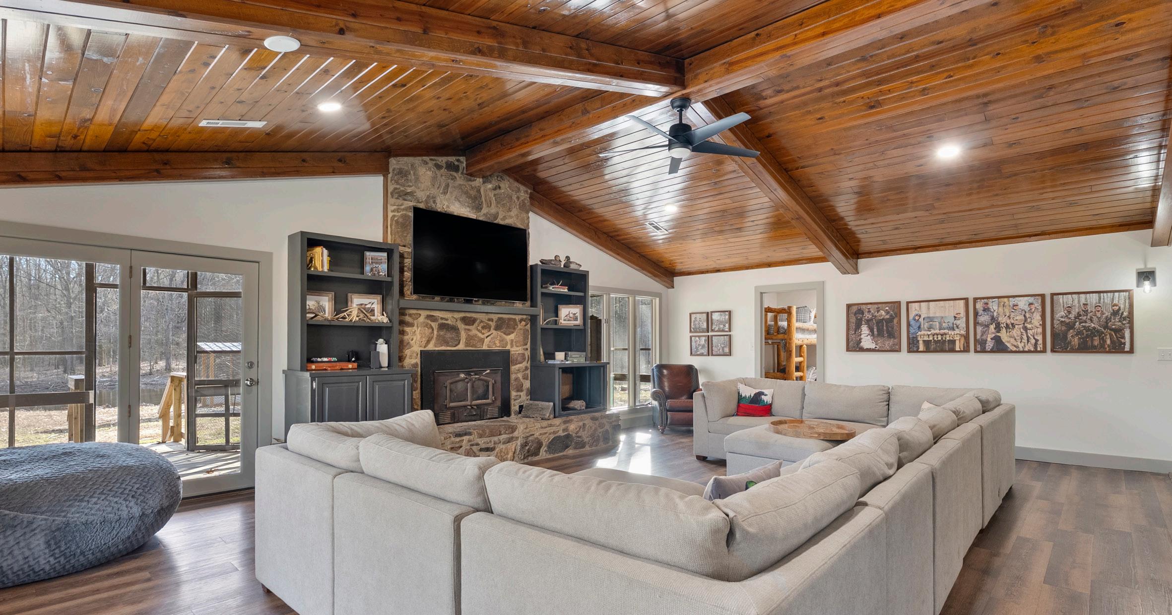 lodge consisting of 2,780± heated & cooled square feet. With three bedrooms and two bathrooms on the main floor and a large loft upstairs there is plenty of room to sleep large groups. The open-concept kitchen and living room has vaulted ceilings, and was designed to entertain and flows easily outside to the 600± square covered patio. Located on the opposite side of the kitchen is a 1,250± square foot garage that is designed to store hunting equipment and has individual lockers for members.
