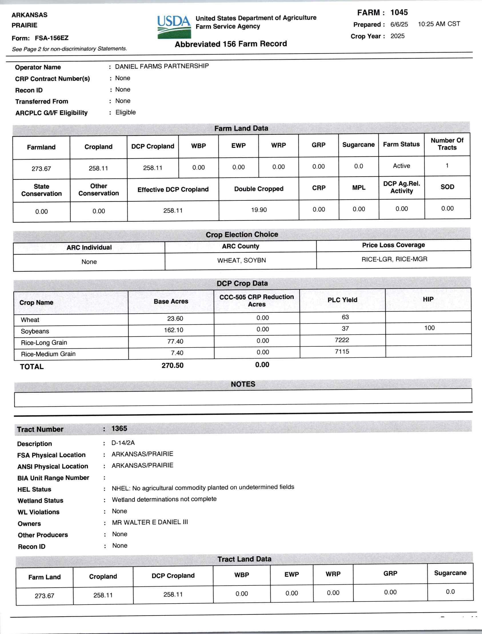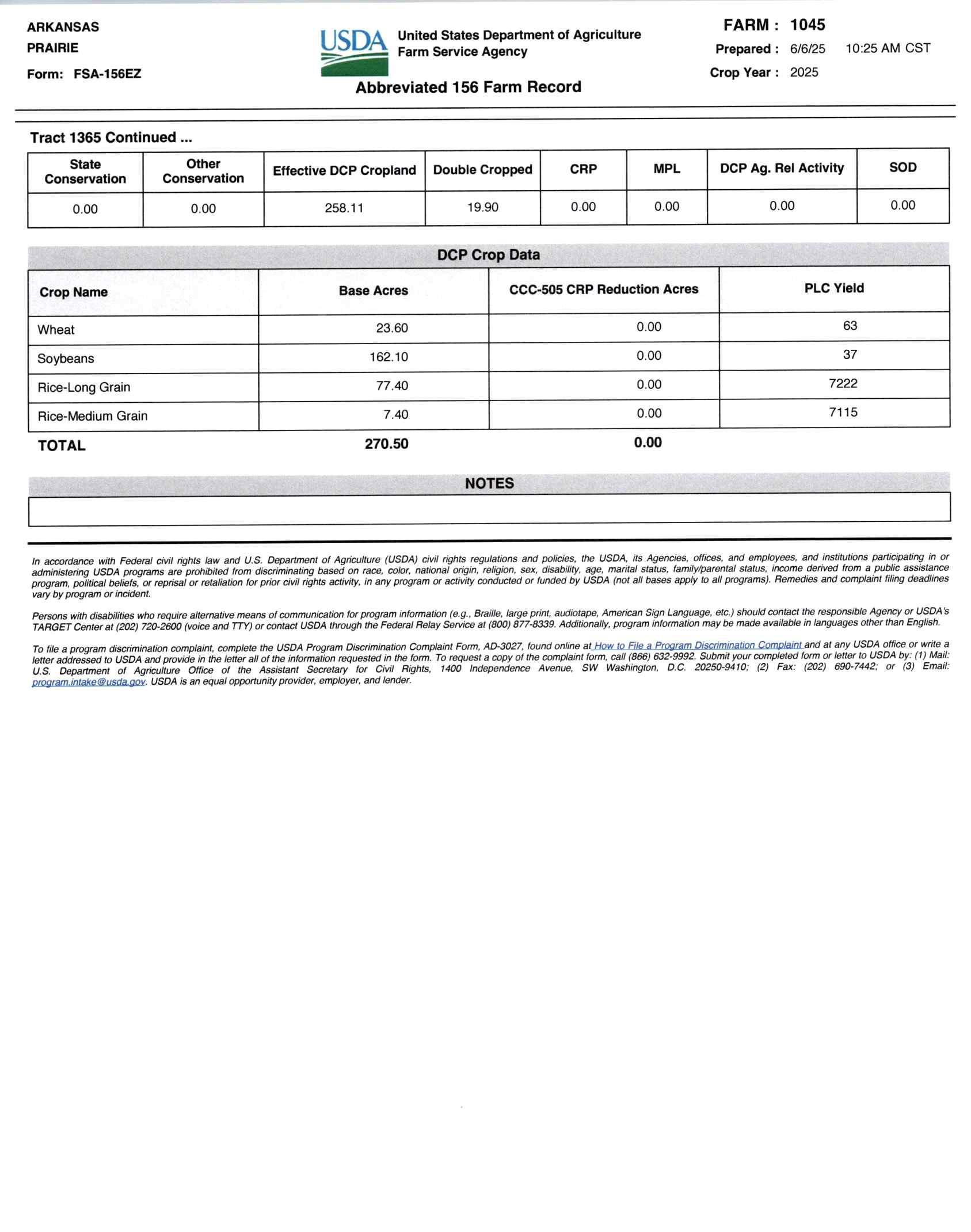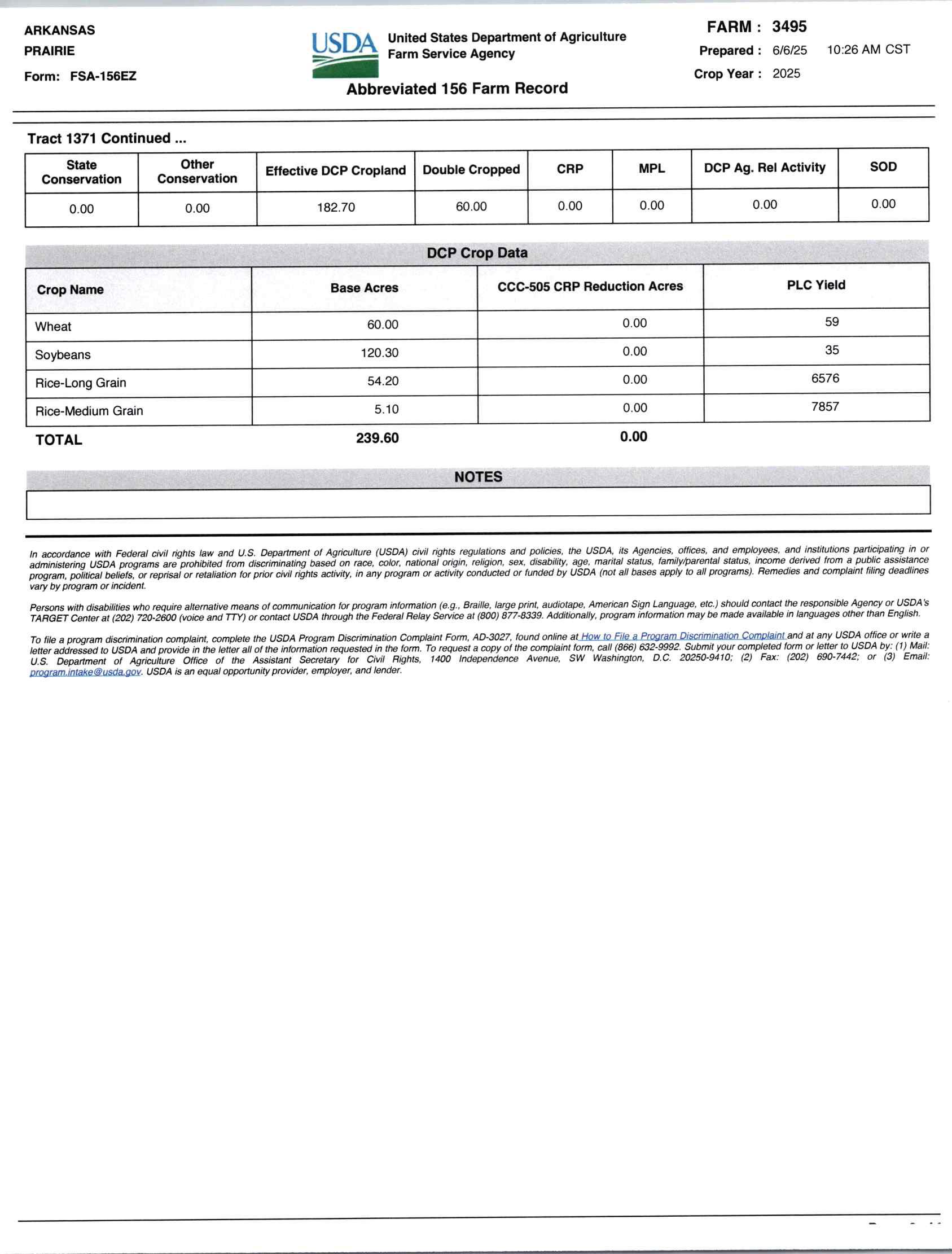 The Clear Point Prairie Farm consists of 926± acres located in Arkansas and Prairie County, Arkansas. The farm offers an excellent agricultural and recreational investment. The Farm Service Agency office reports a total of 800.05± tillable acres. All of the tillable acres are irrigated and 134 ± acres have been leveled to a zero grade. There are four surface water irrigation reservoirs that total 44± acres, five tailwater recovery pits, seven wells, and seven relifts that